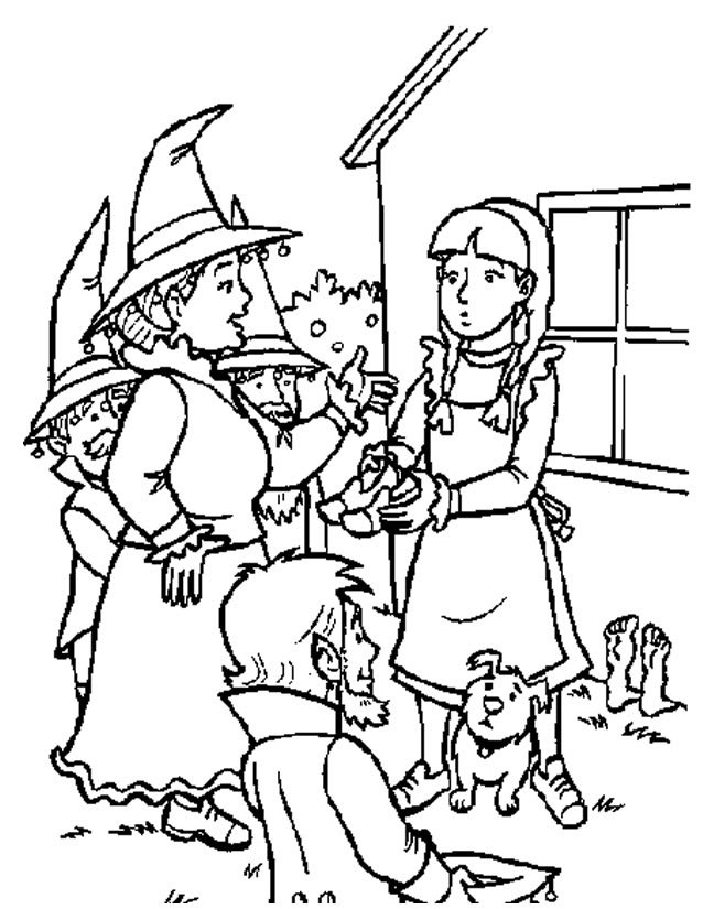 ![Раскраска к сказке волшебник изумрудного города Элли и Тотошка]()