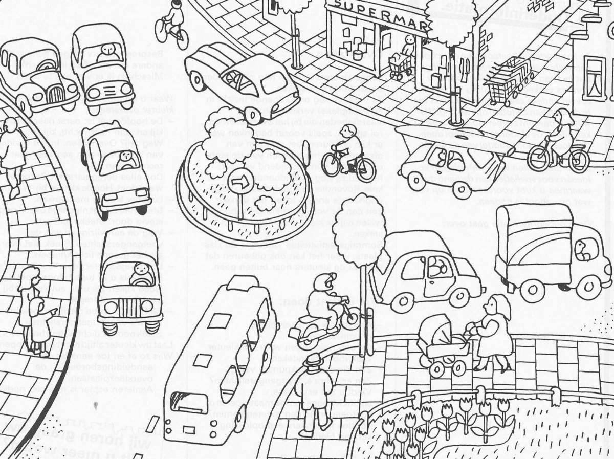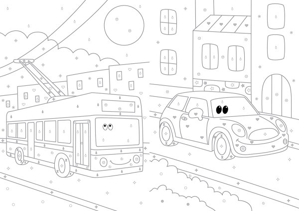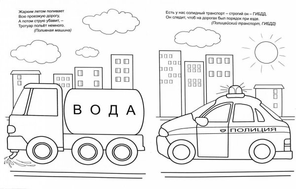 В городе машин раскраска