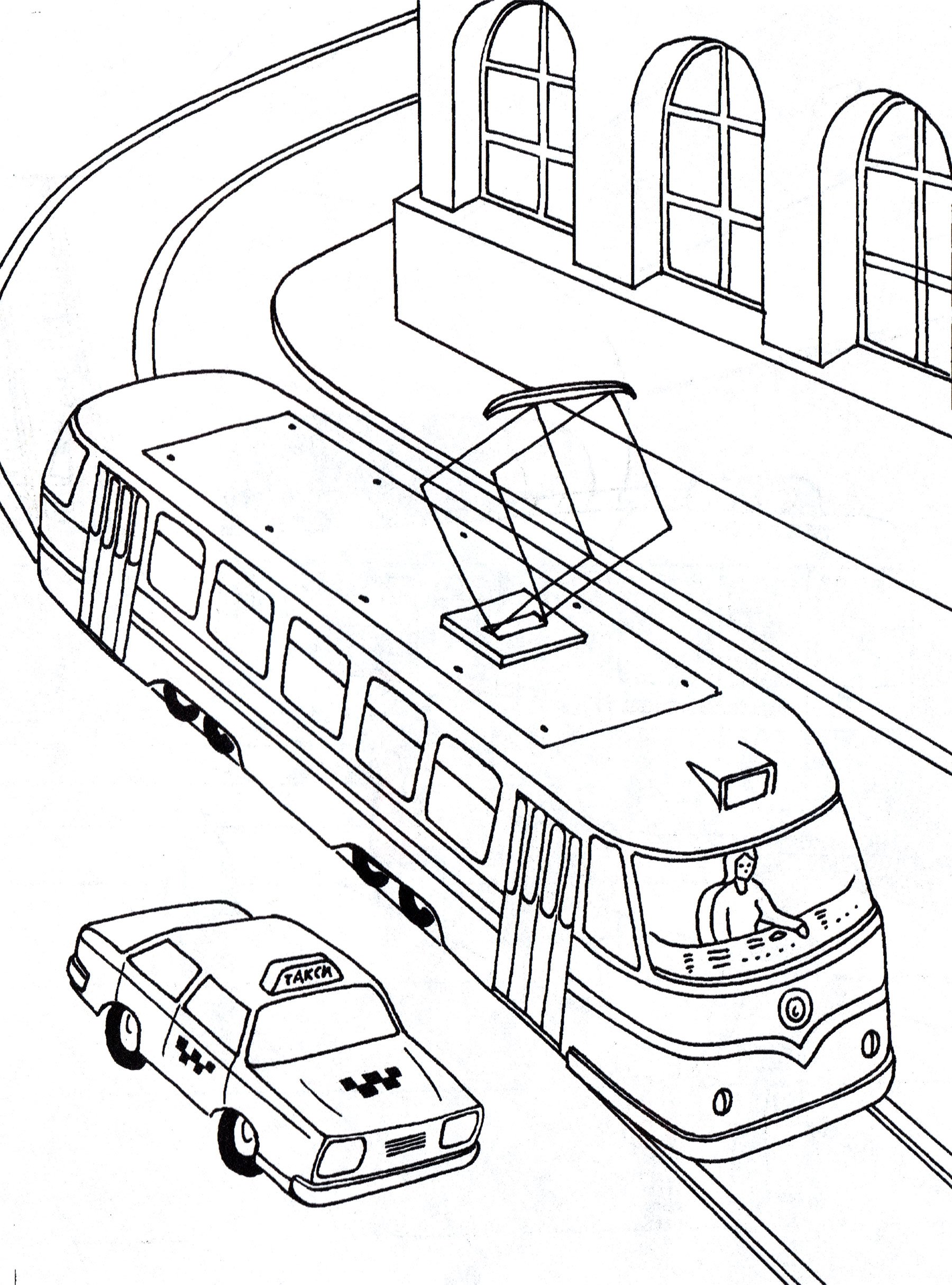 Трамвай раскраска для детей