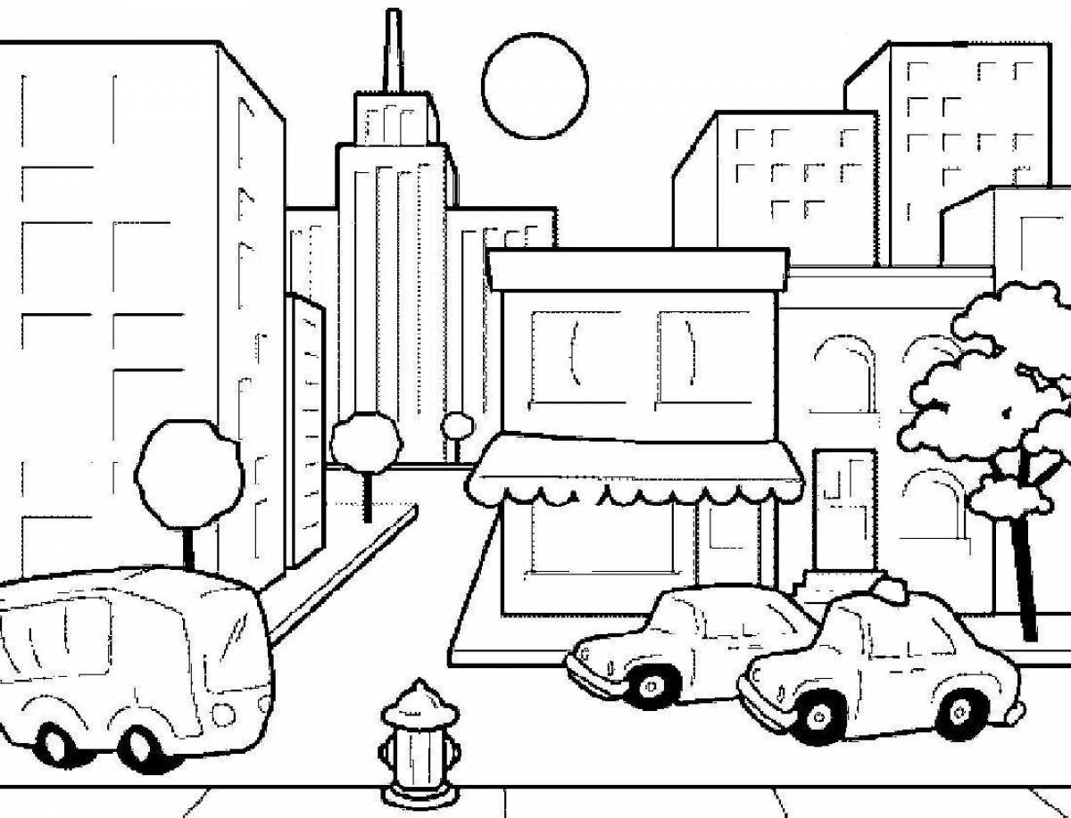 Раскраска улицы города для детей