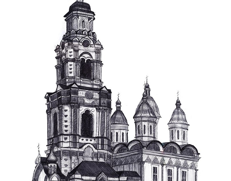 Успенский собор Астрахань рисунок