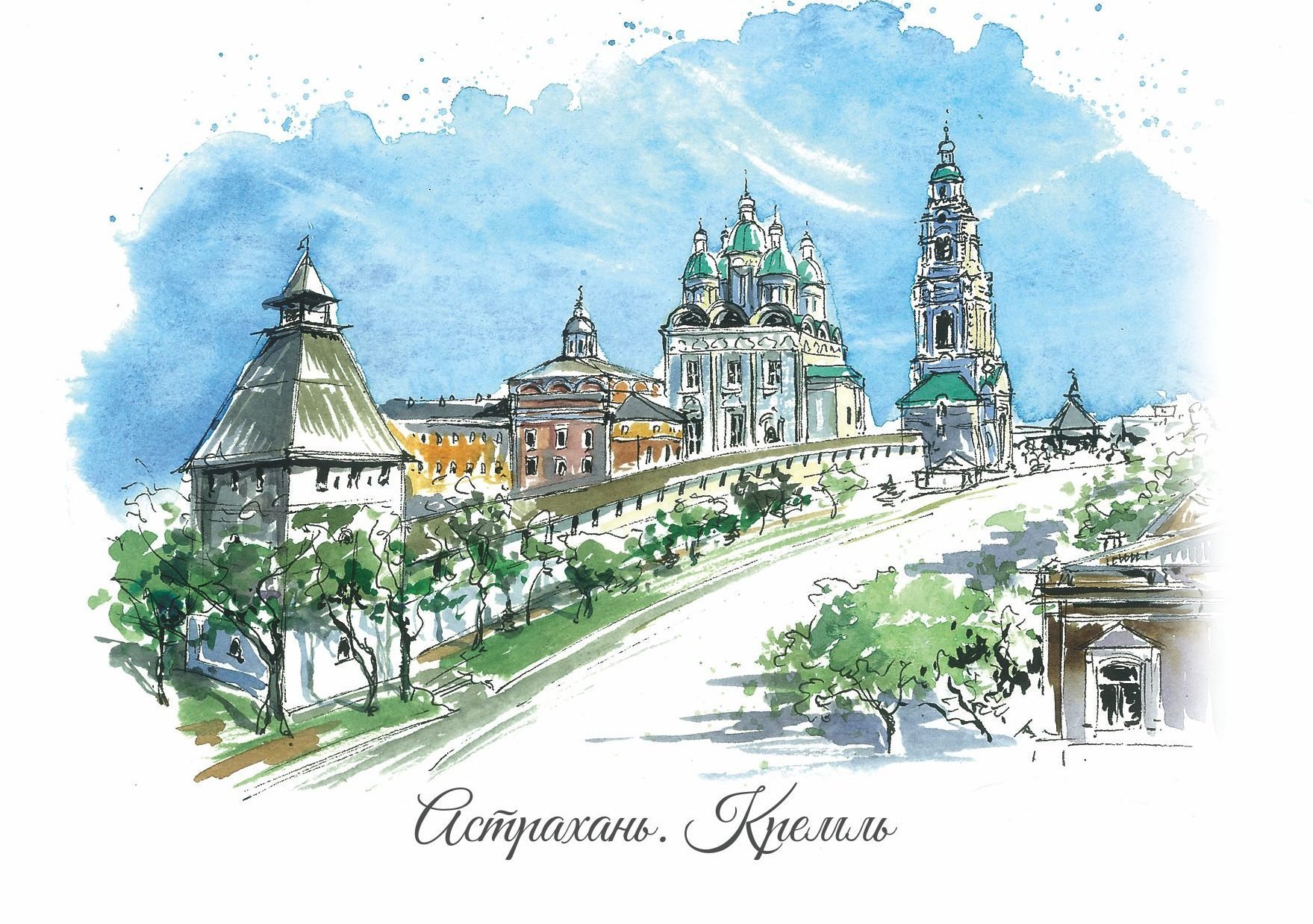 ![Астраханский Кремль акварель]()