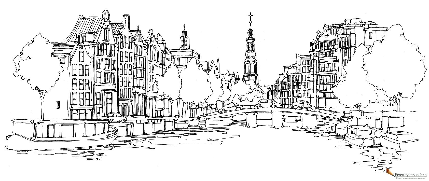 ![Городской пейзаж раскраска]()