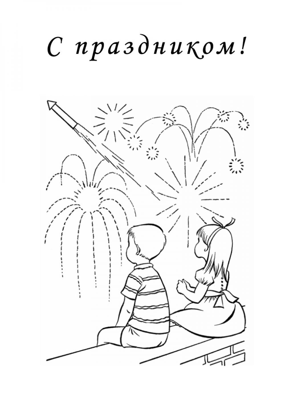![Раскраска праздничный салют]()