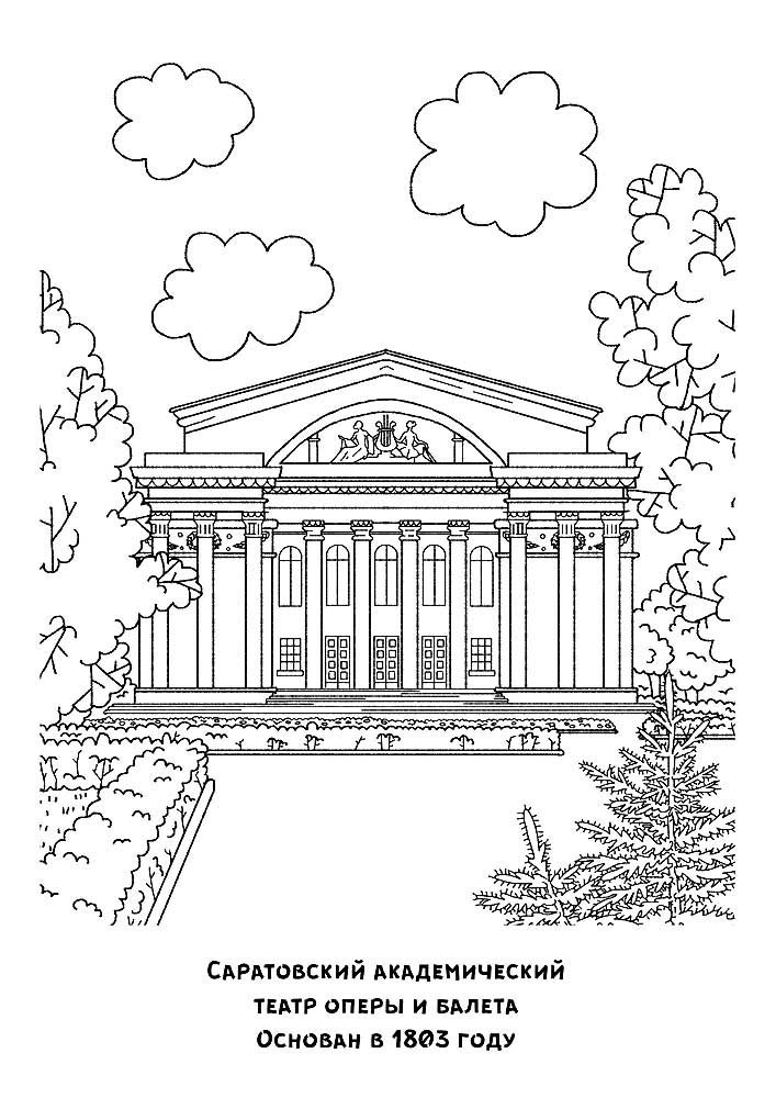 ![Раскраска достопримечательности театр оперы и балета Саратов]()
