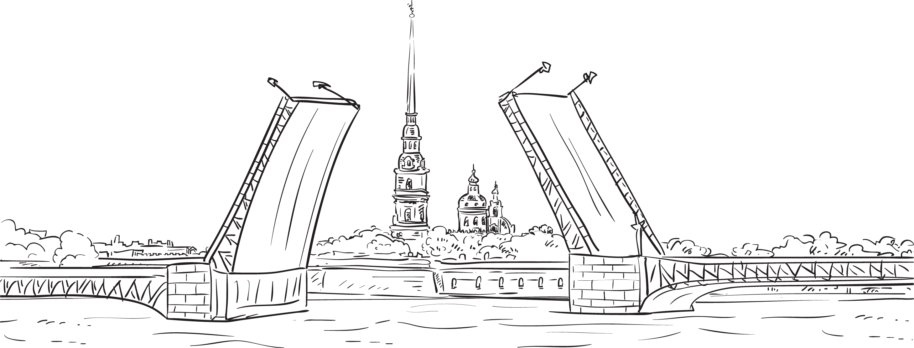 ![Дворцовый разводной мост в Санкт-Петербурге рисунок]()