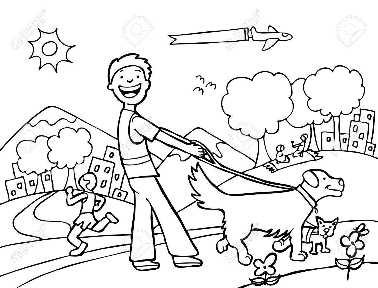 ![Прогулка раскраска для детей]()