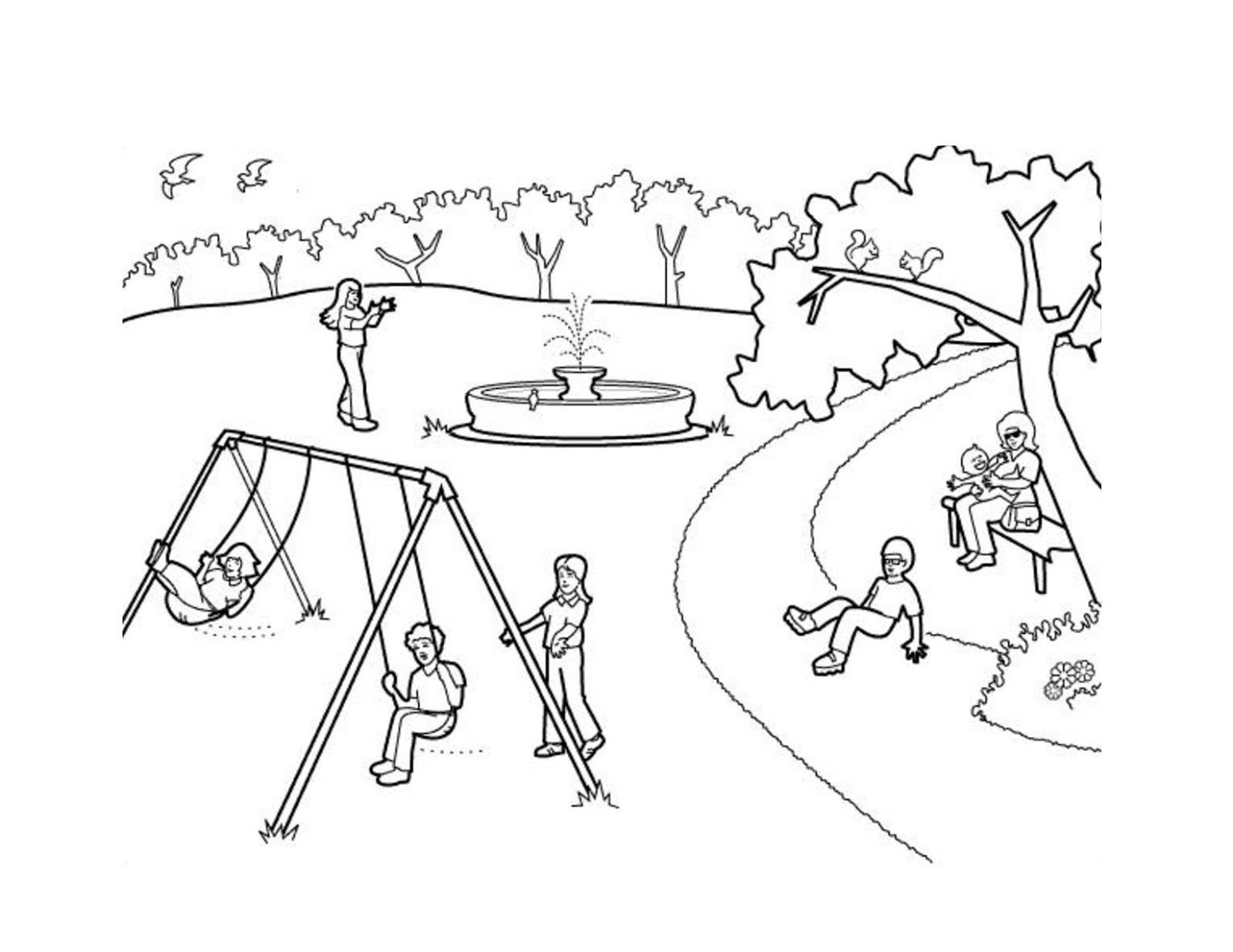 ![Парк для прогулки раскраска]()