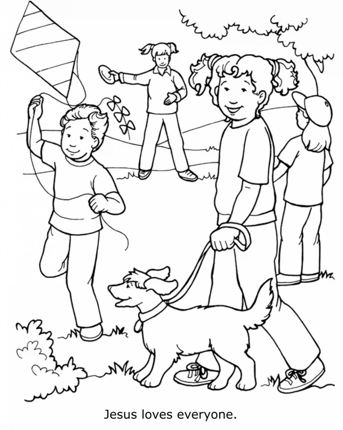 Прогулка раскраска для детей