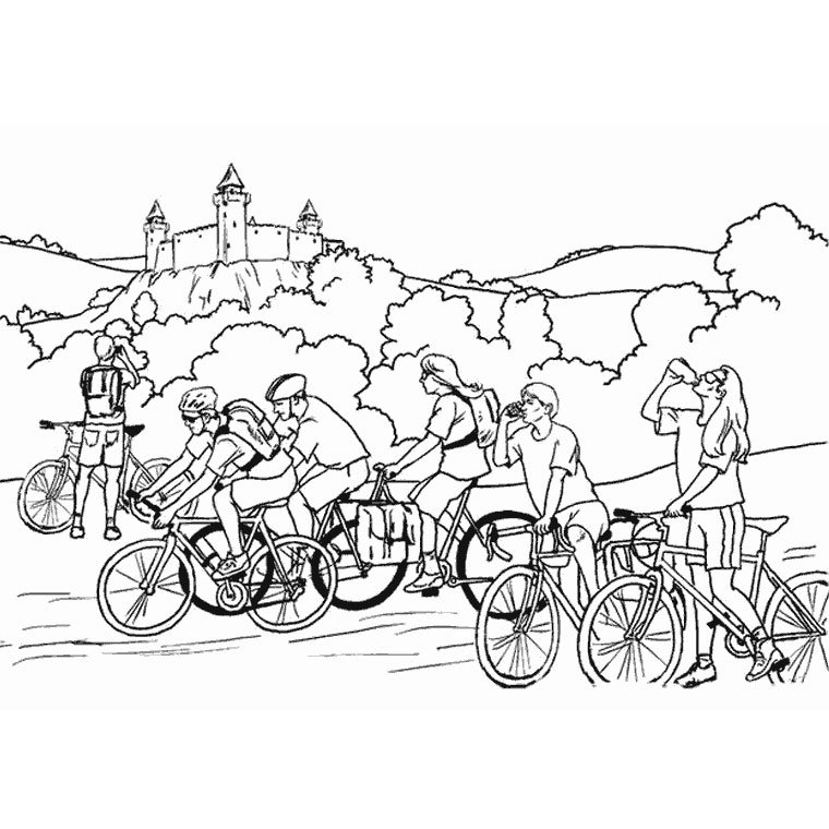 ![Раскраска путешествие на велосипеде]()