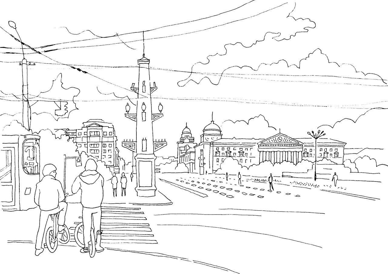 ![Площадь Ленина Чита карандашом]()