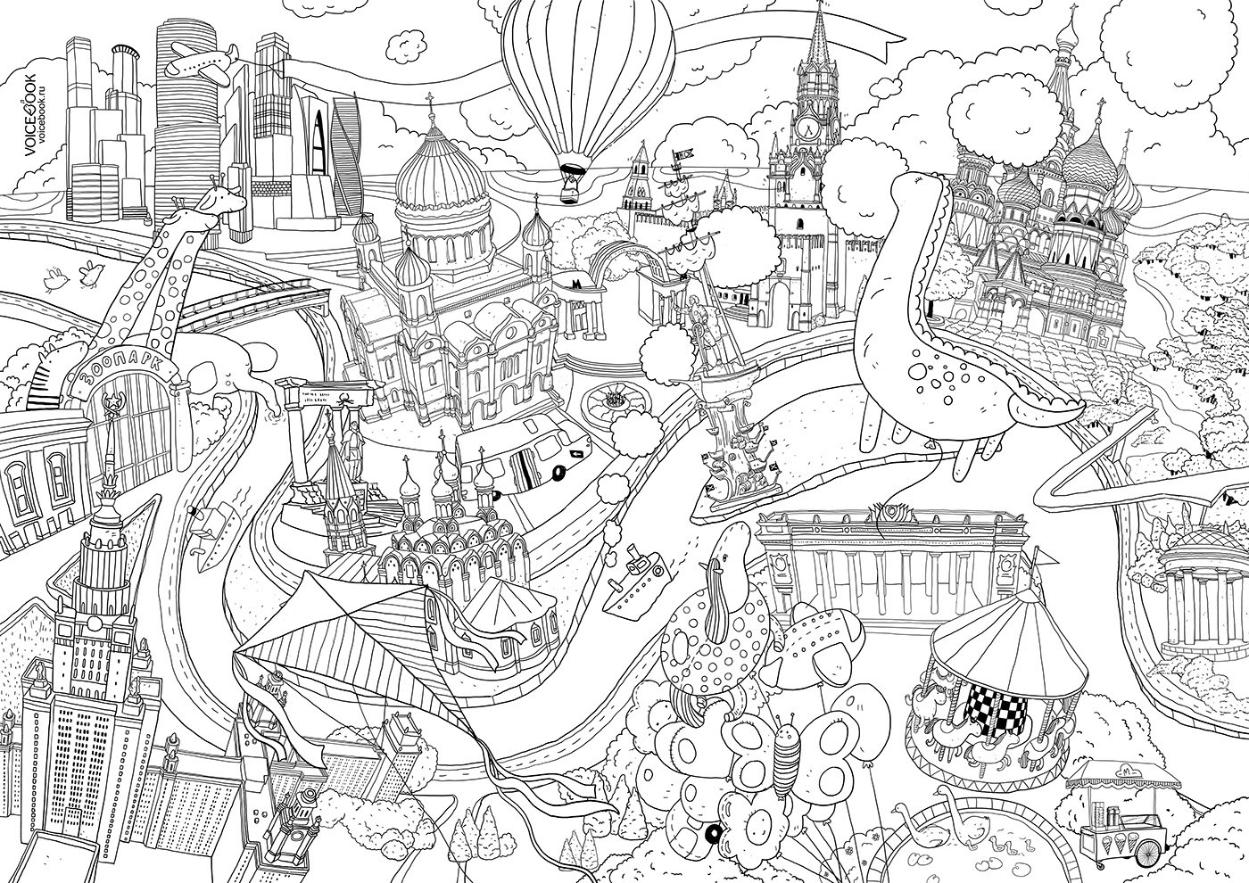![Необычный город раскраска]()