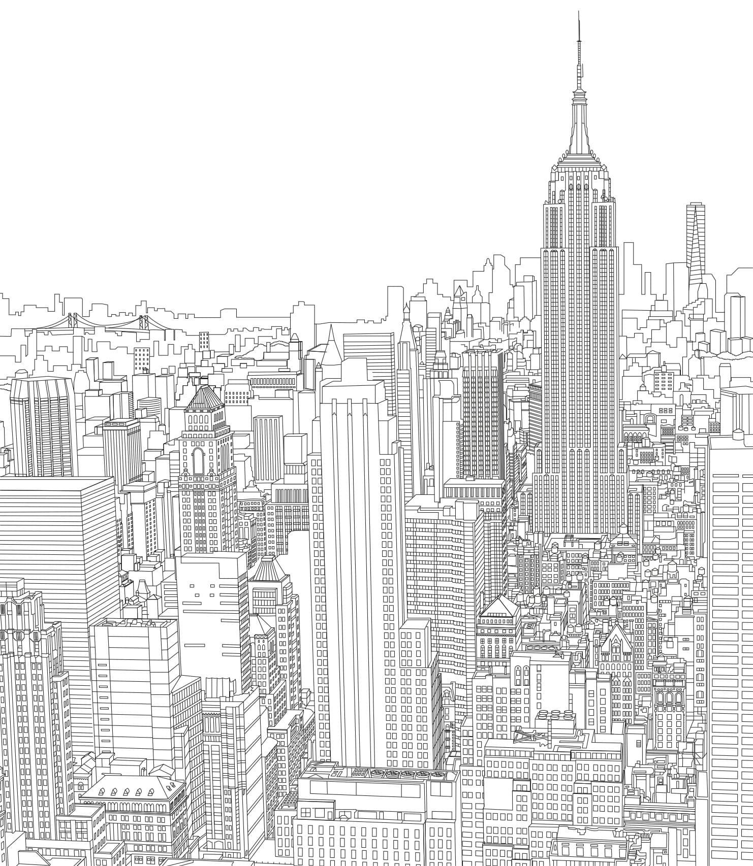 ![Городской пейзаж раскраска]()