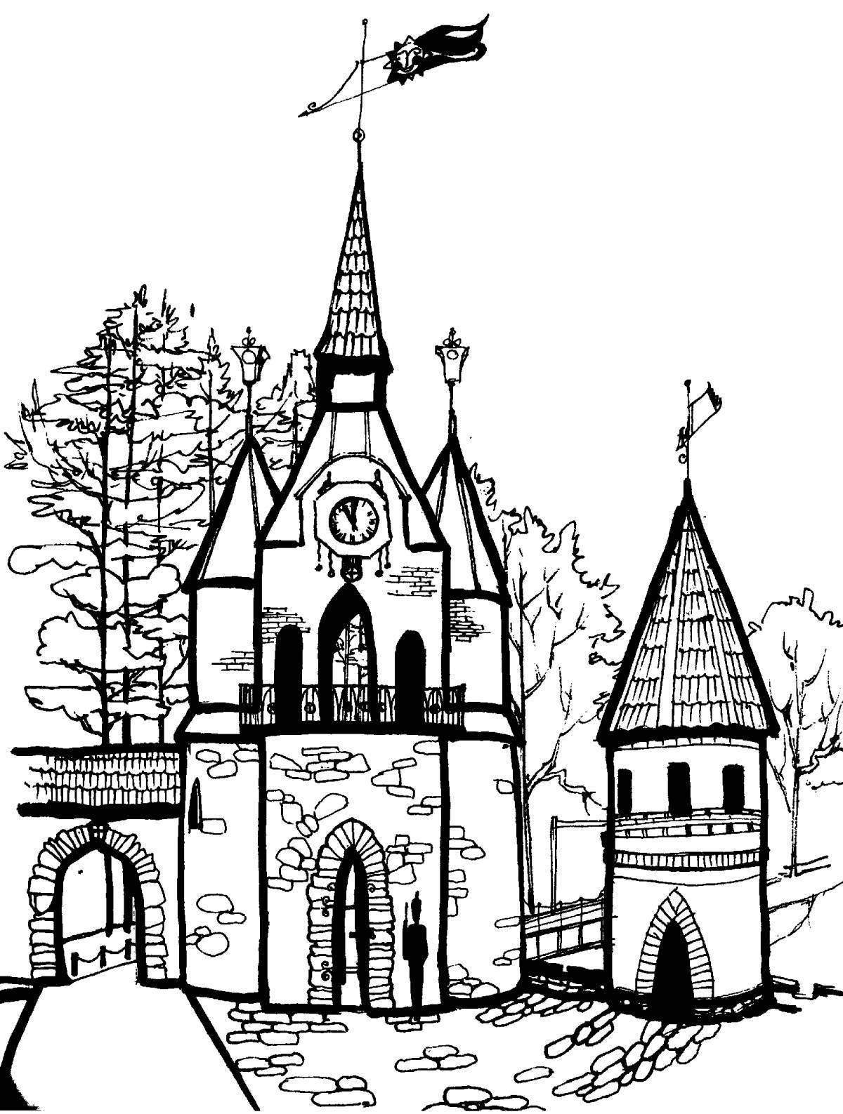 ![Спасская башня Московского Кремля для раскрашивания детям]()