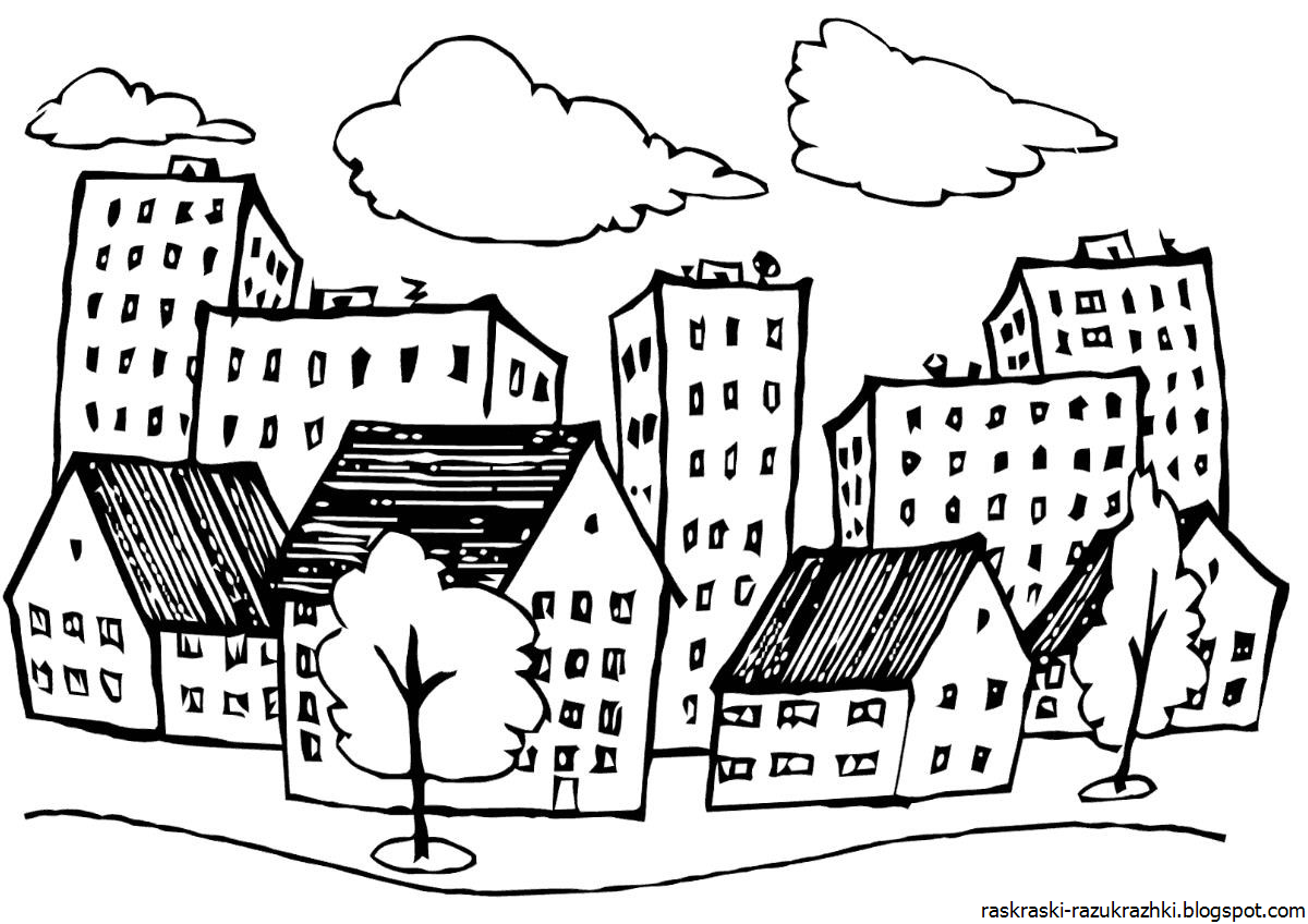 ![Раскраска город для детей]()