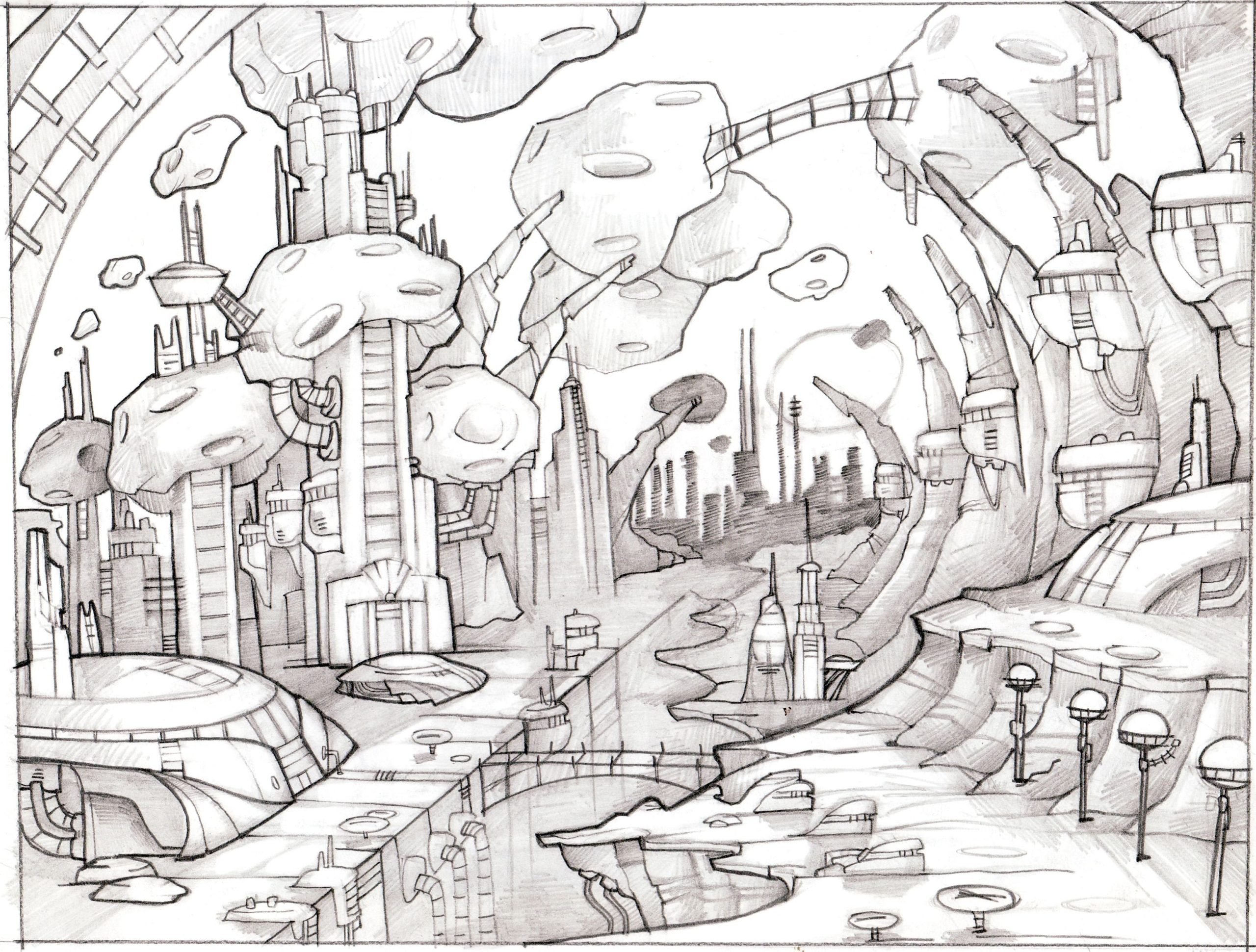 ![Город будущего карандашом]()