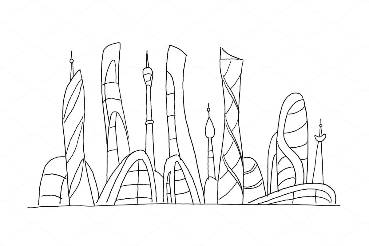 Город будущего раскраска легкая