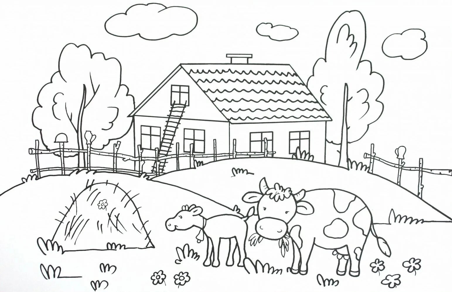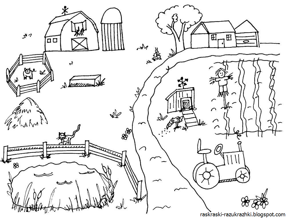 Деревенский пейзаж раскраска