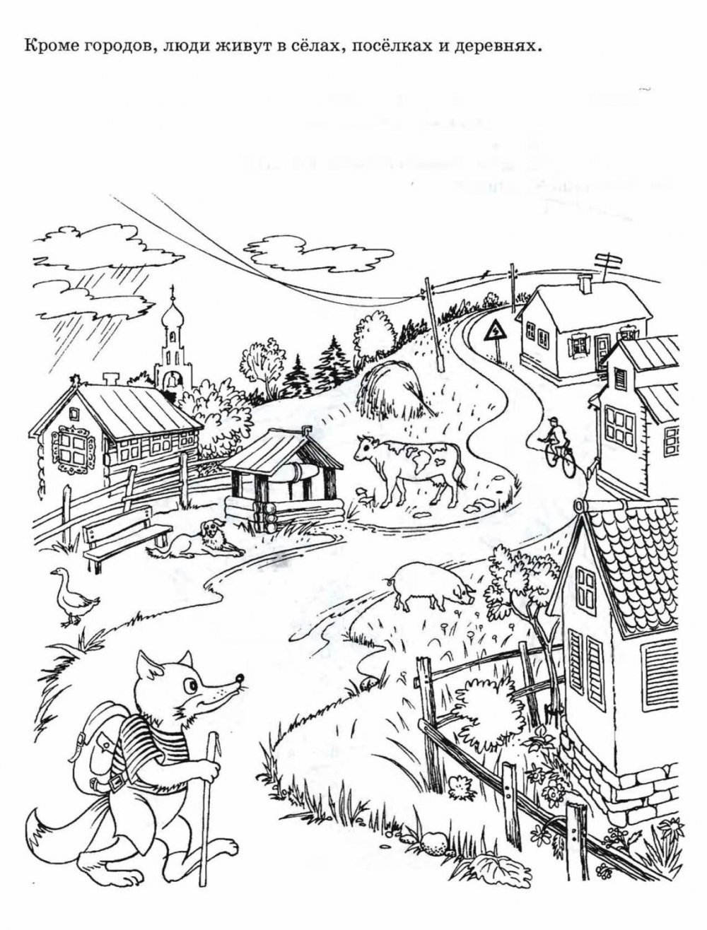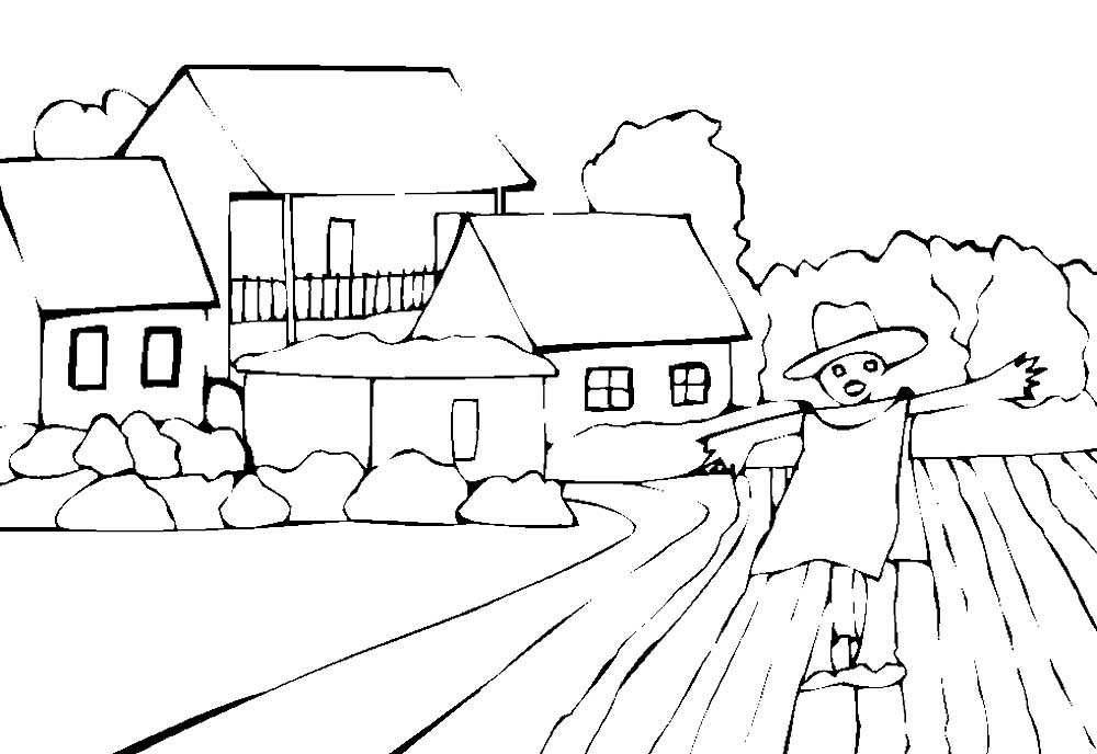 ![Деревенский пейзаж раскраска]()
