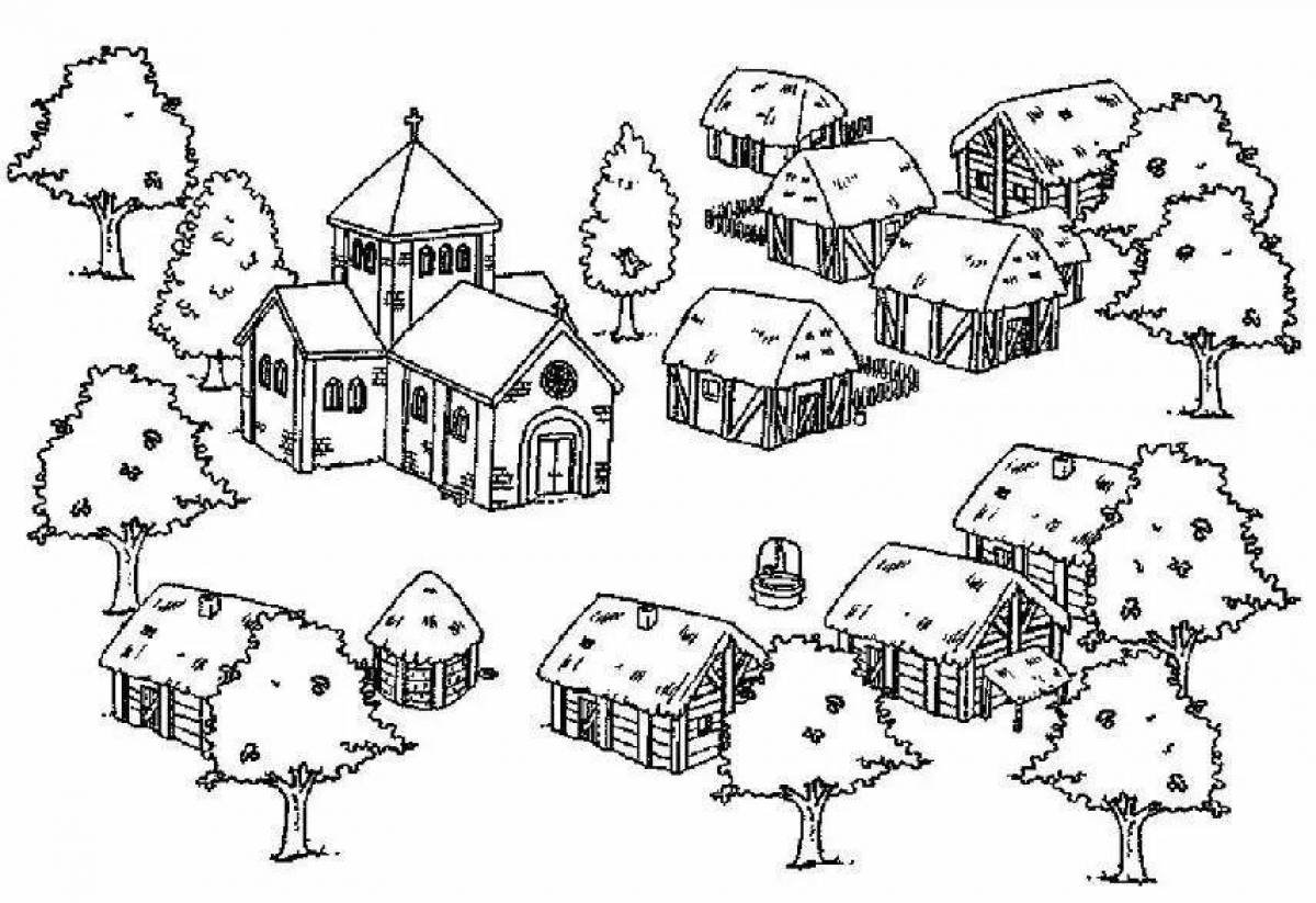 Деревня раскраска для детей