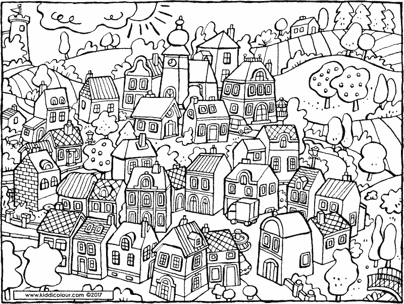 ![Раскраска город для детей]()