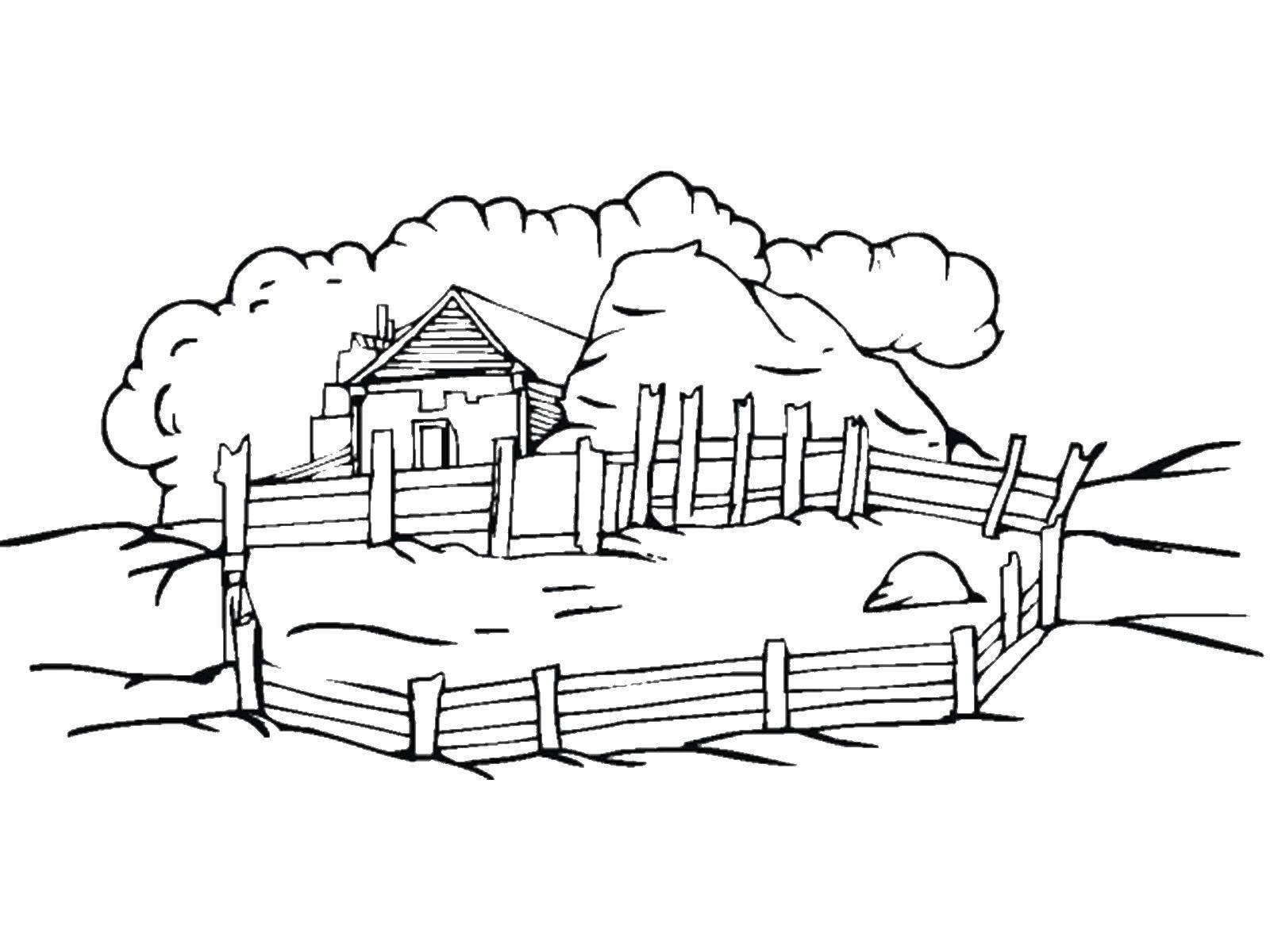 ![Раскраска дом в деревне]()