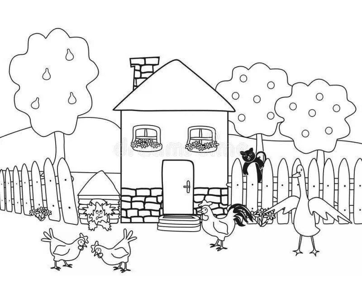 Раскраска дом в деревне