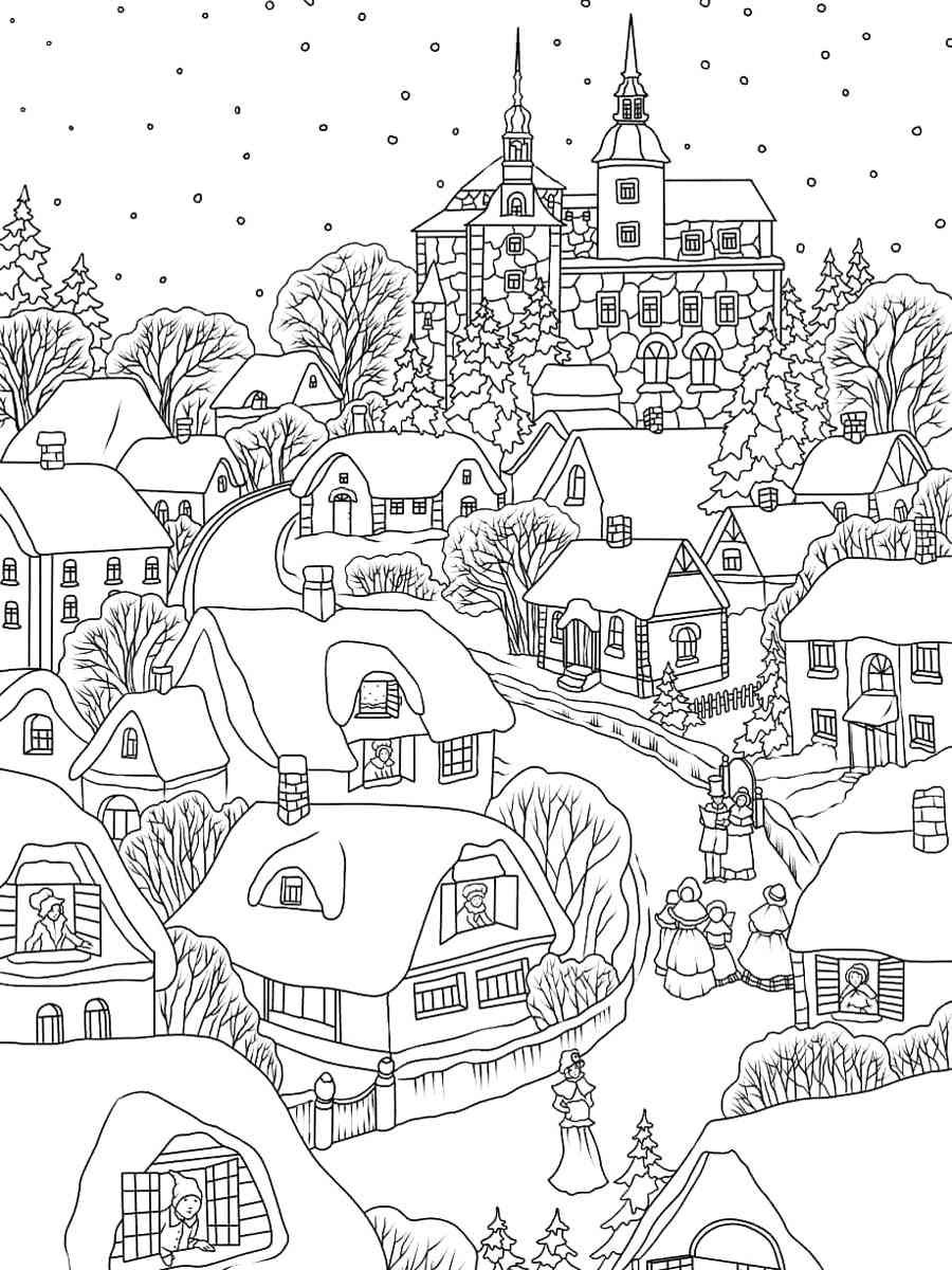 Зимний пейзаж раскраска