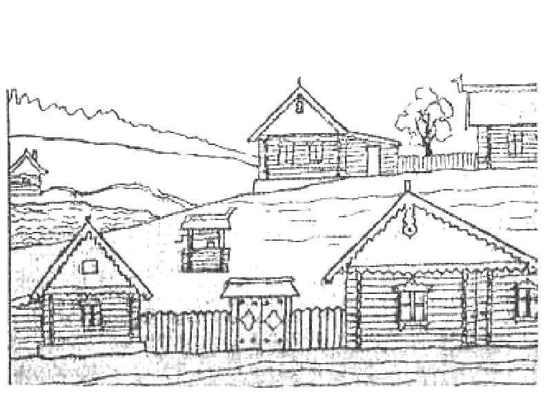 ![Раскраска русская деревня]()