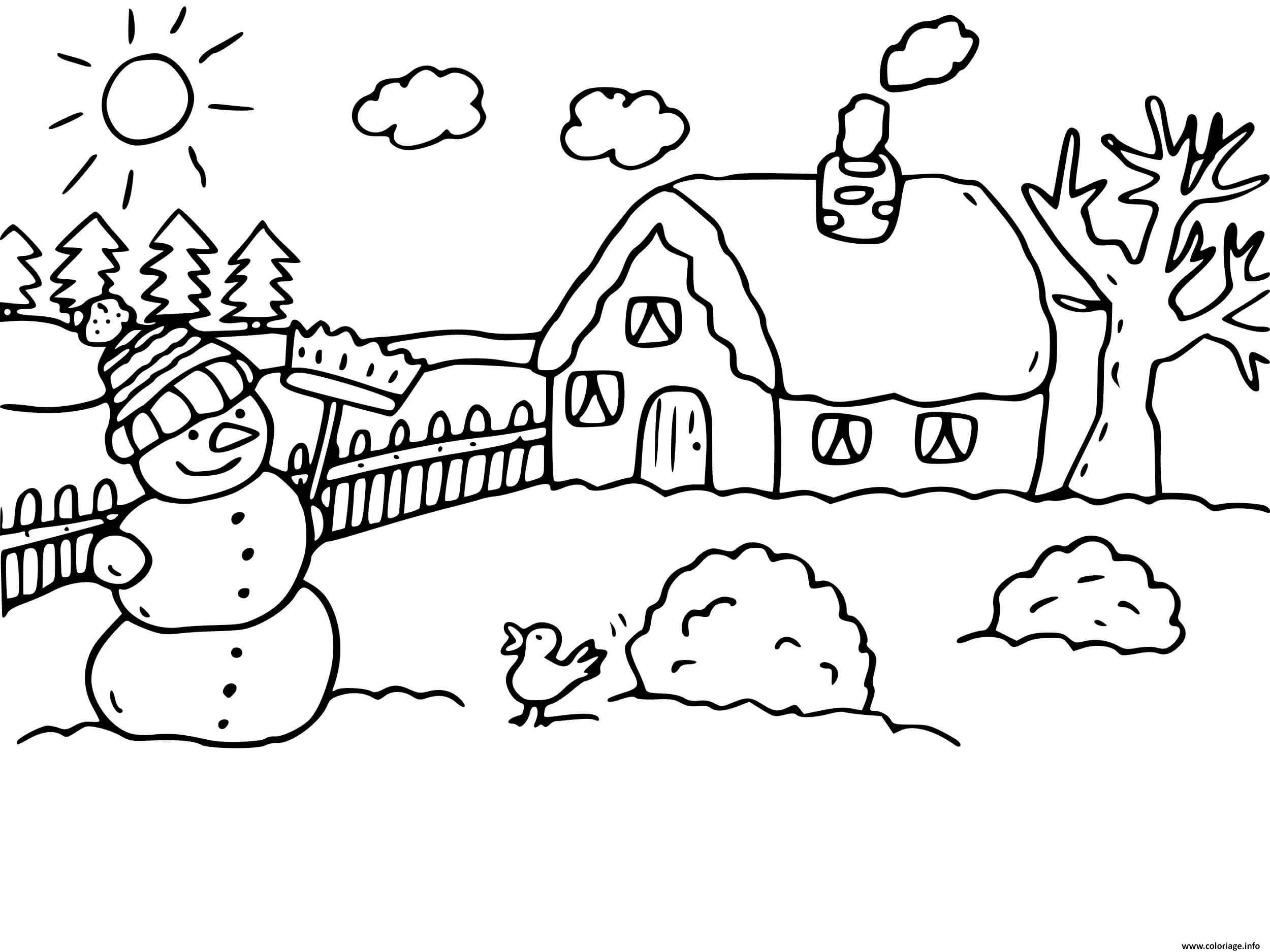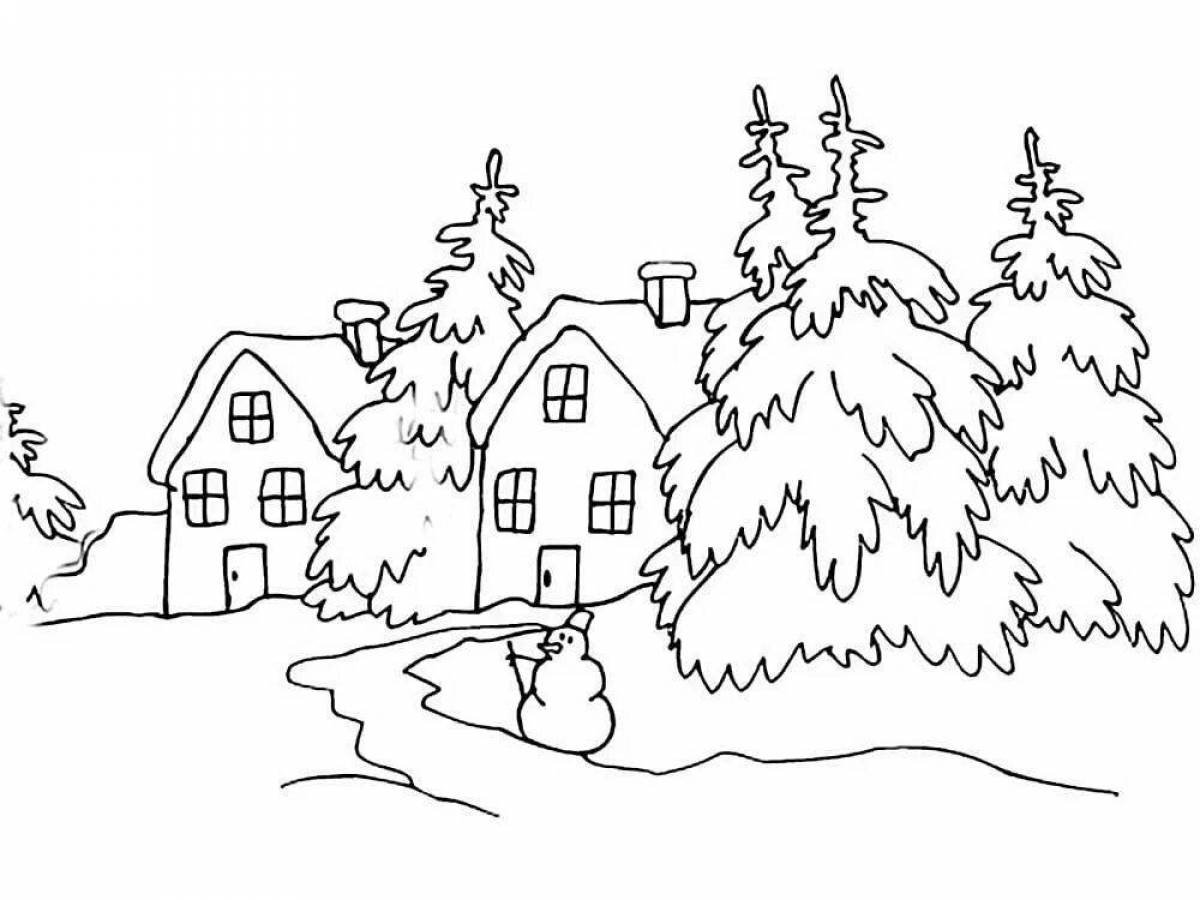 ![Раскраска зима в деревне]()