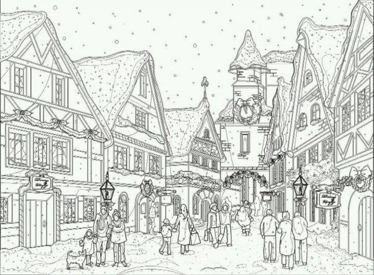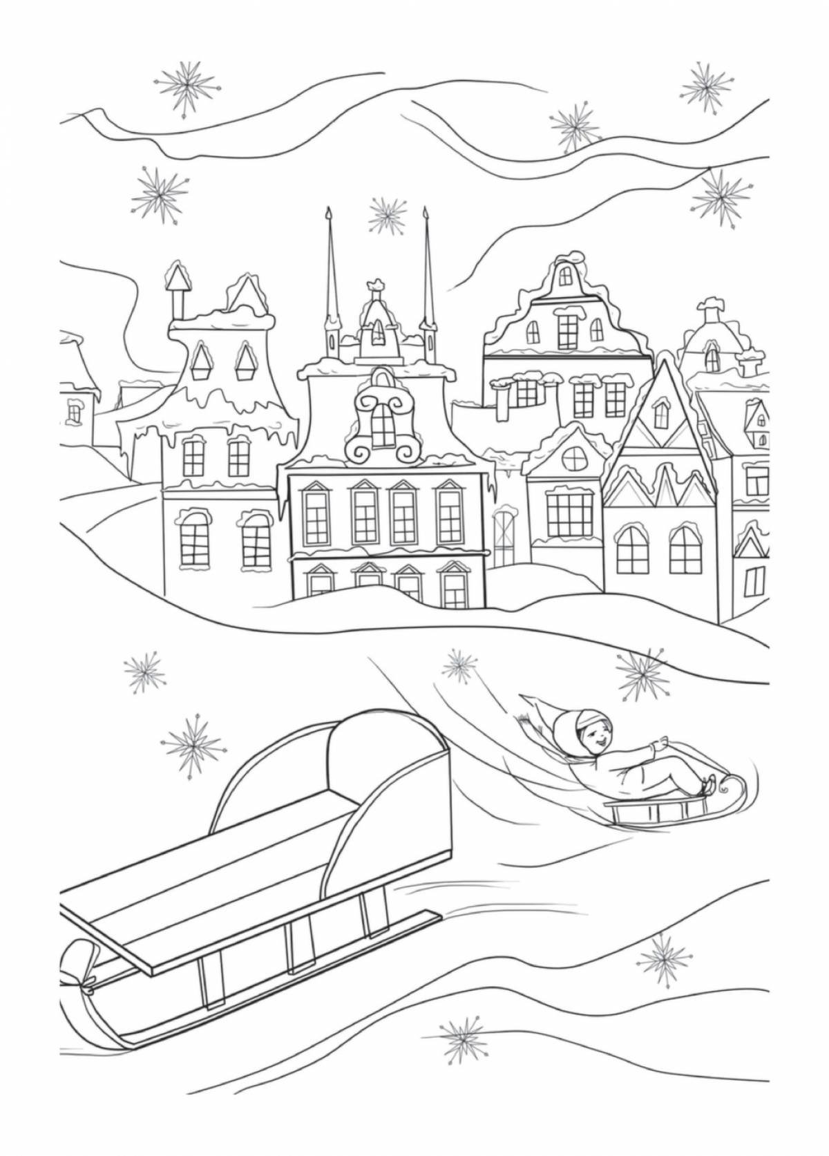 Зимний город раскраска для детей