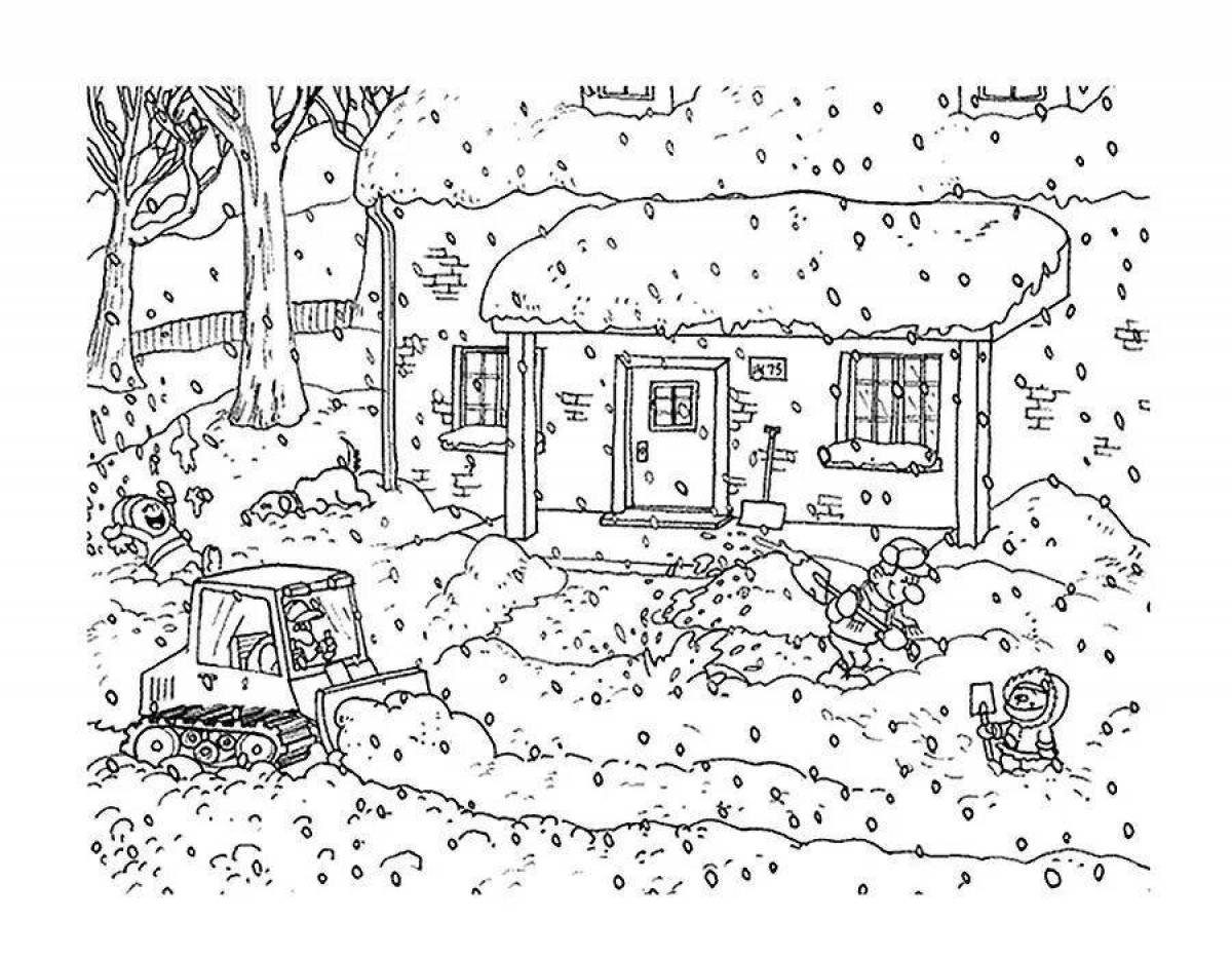 ![Труд зимой раскраски для детей]()