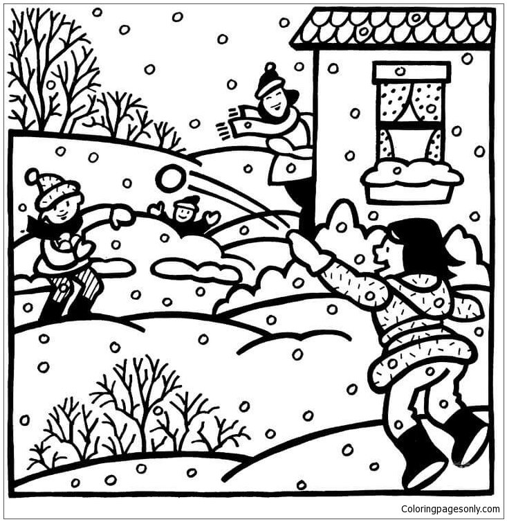 ![Игра в снежки раскраска]()