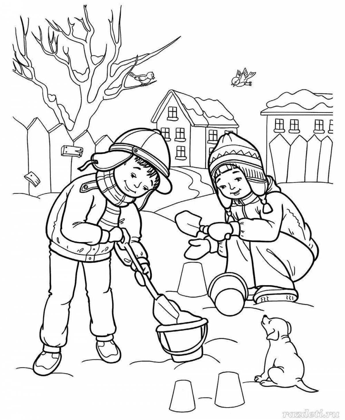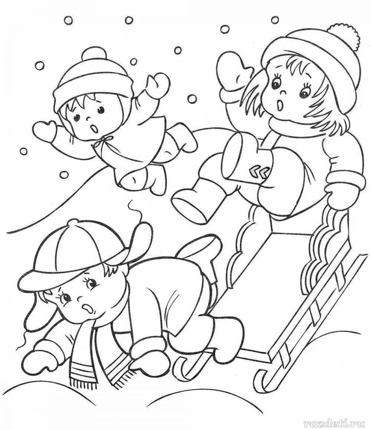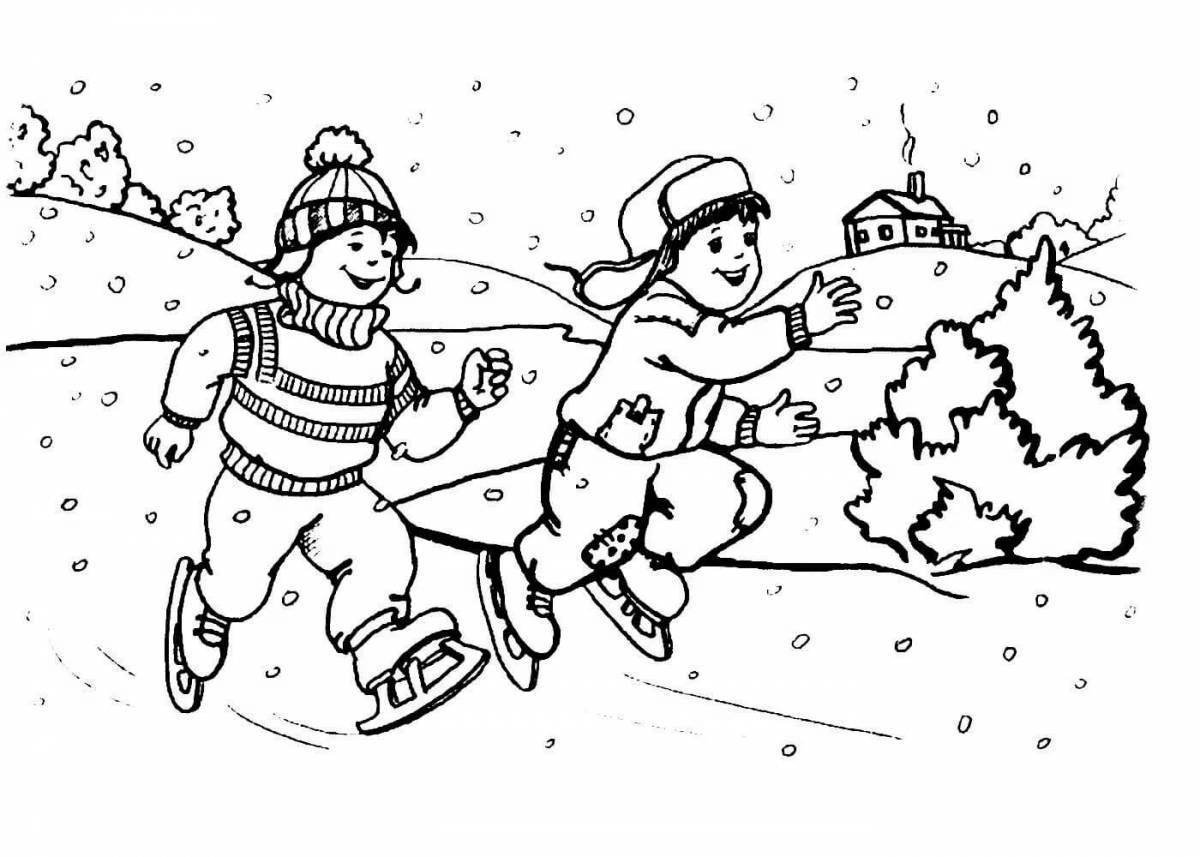 Зимние развлечения раскраска