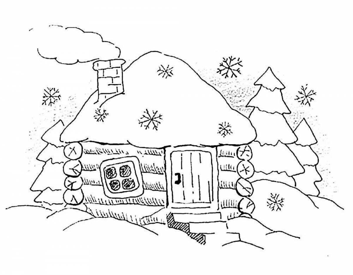 ![Зимний домик раскраска для детей]()