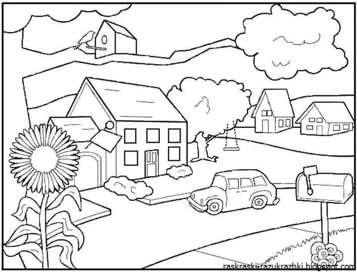 ![Раскраска город для детей]()