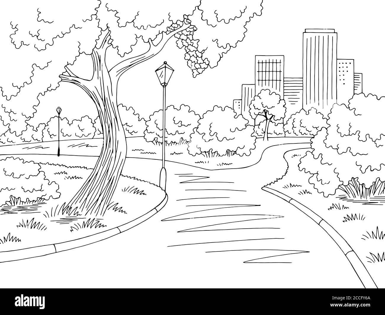 ![Раскраска парк с деревьями]()