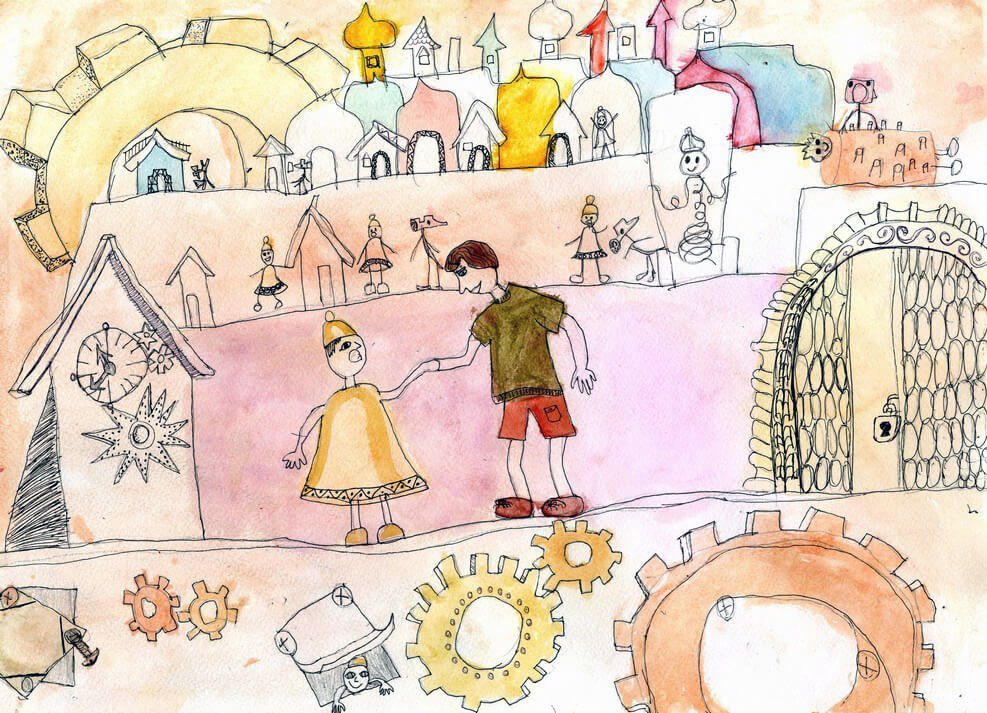 Детские рисунки городок в табакерке