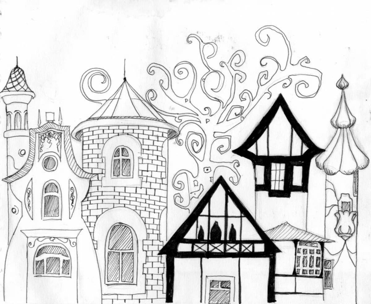 Сказочный город рисунок карандашом