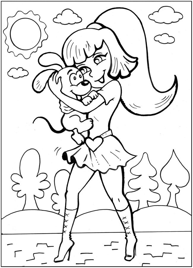 ![Раскраска к сказке волшебник изумрудного города Элли и Тотошка]()