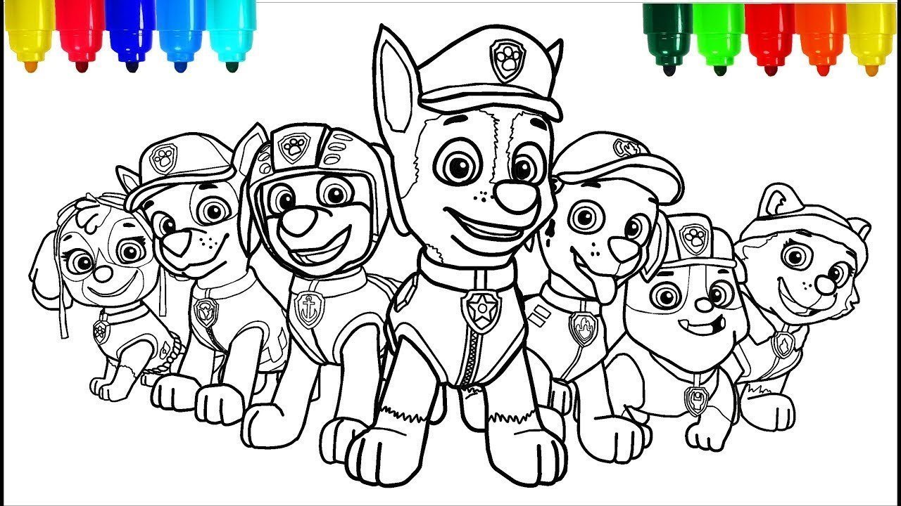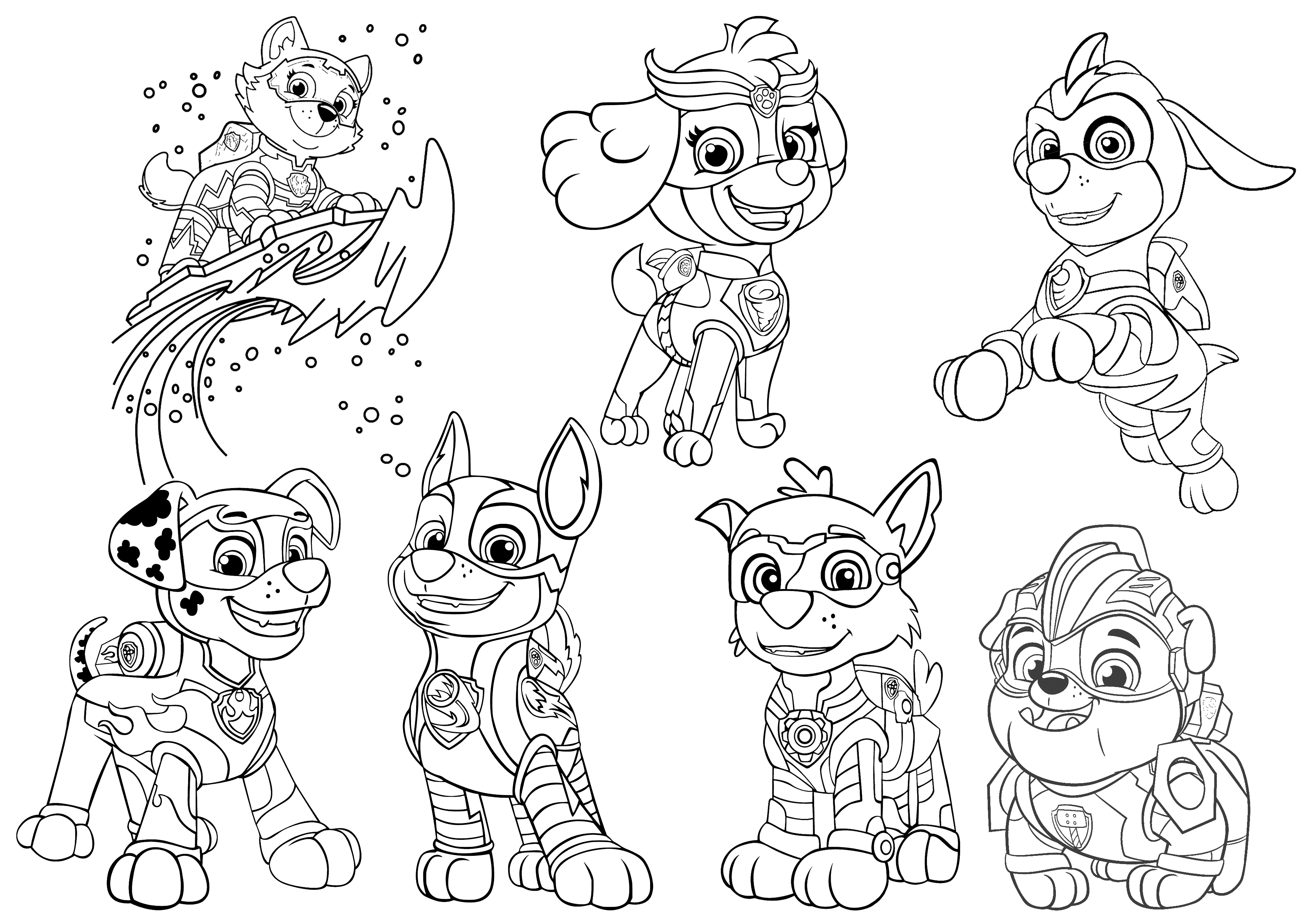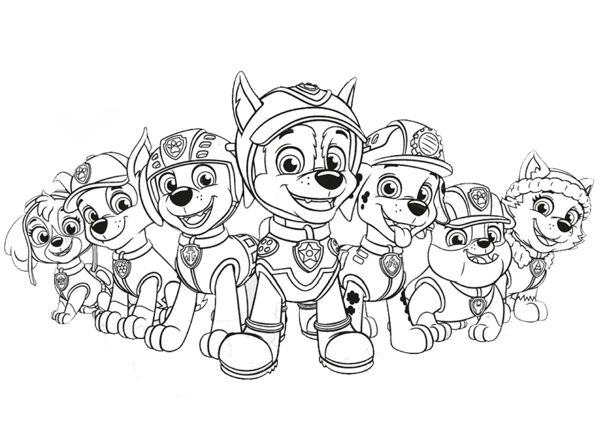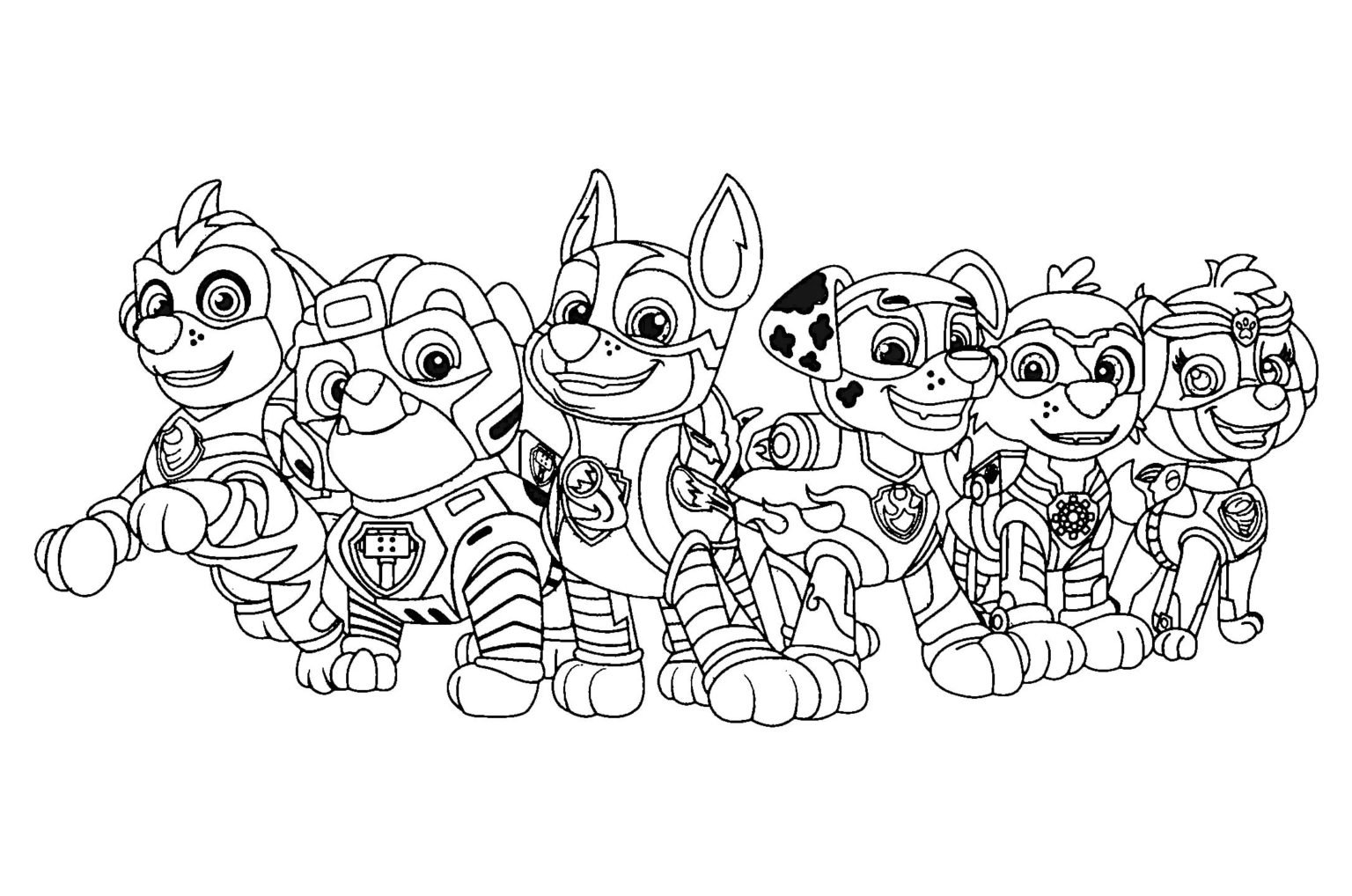 ![Раскраска Щенячий патруль мегащенки вся команда]()