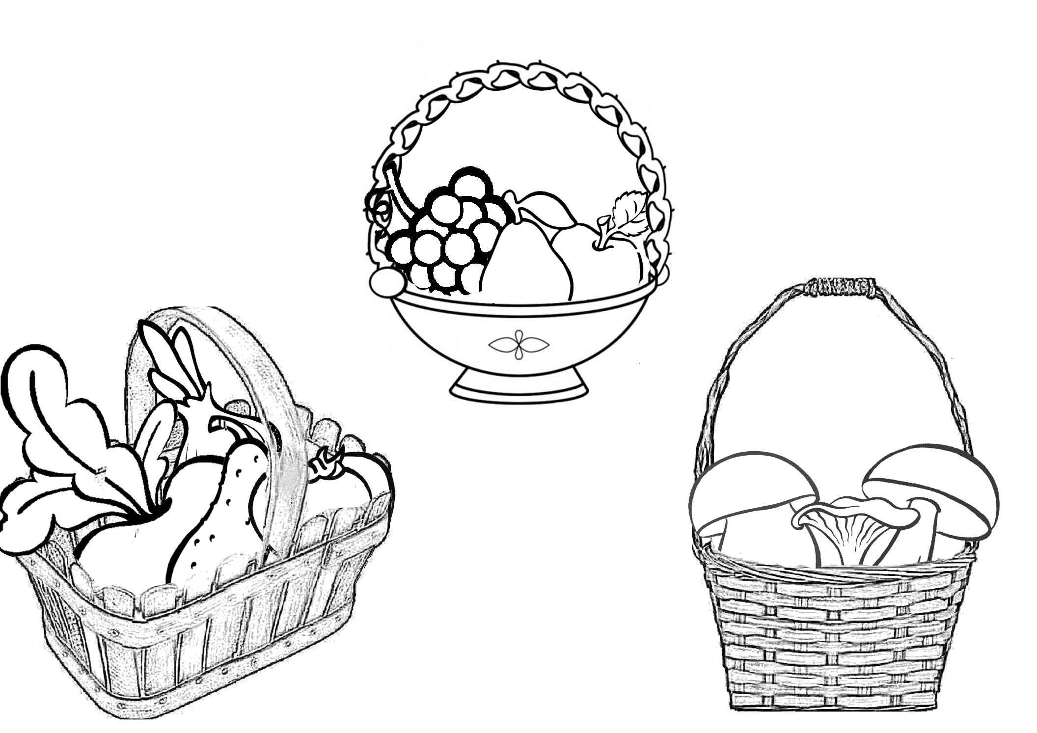 ![Корзина с грибами раскраска для детей]()