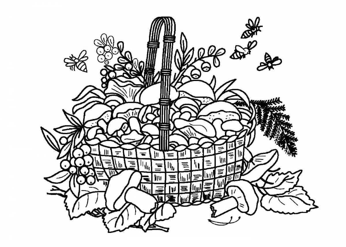 Корзина с грибами раскраска