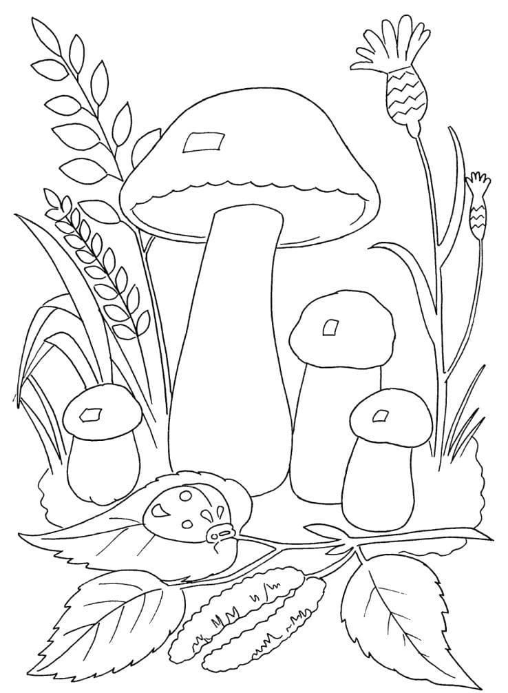 Раскраска грибы в лесу