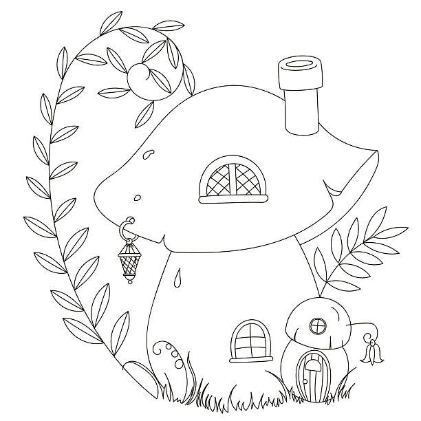 ![Сказочные домики грибы раскраска]()