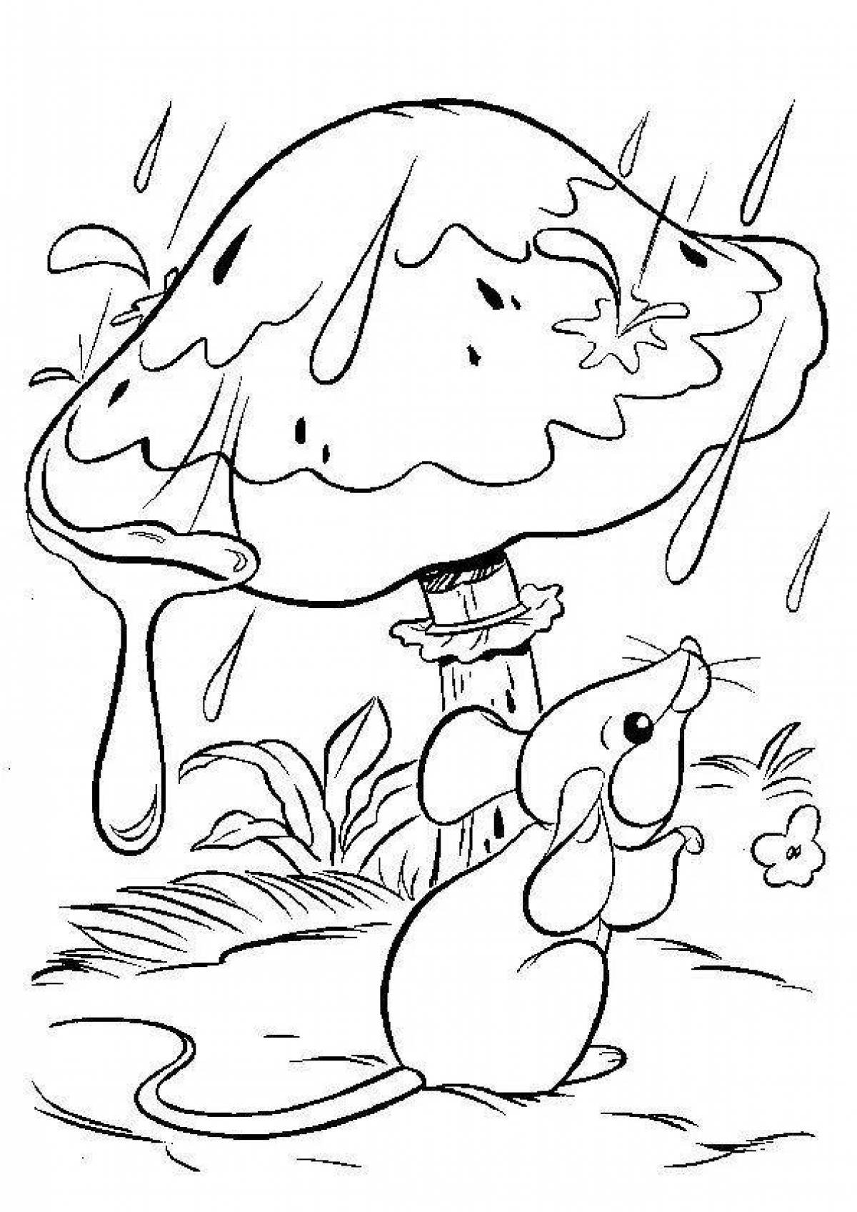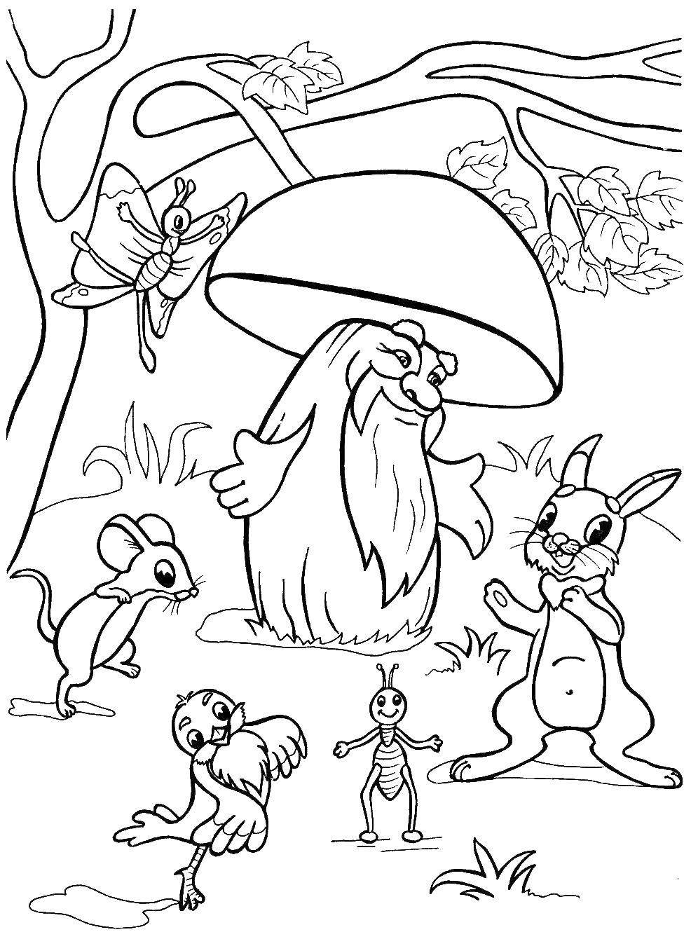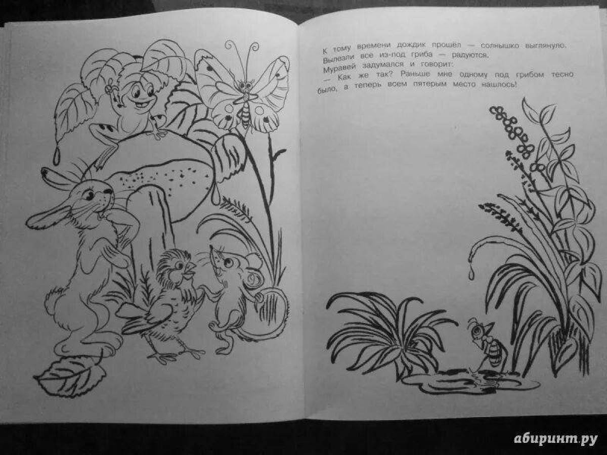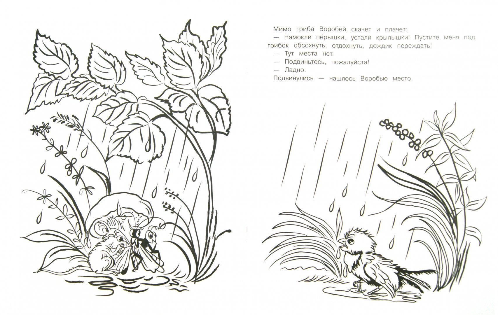 ![Раскраски по сказкам Сутеева для детей под грибом]()