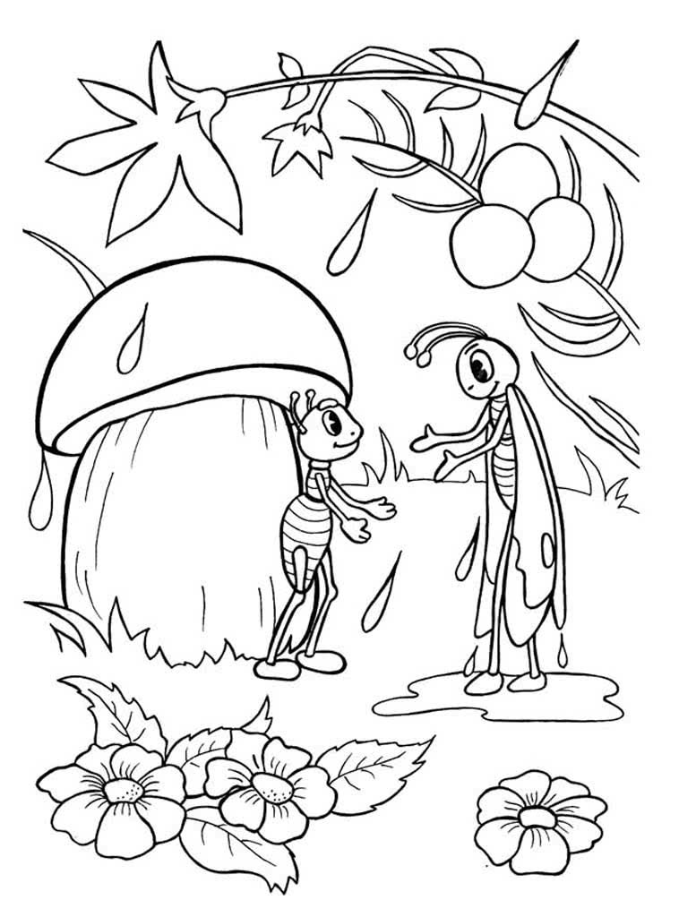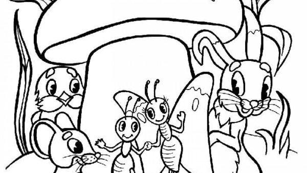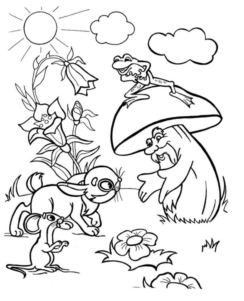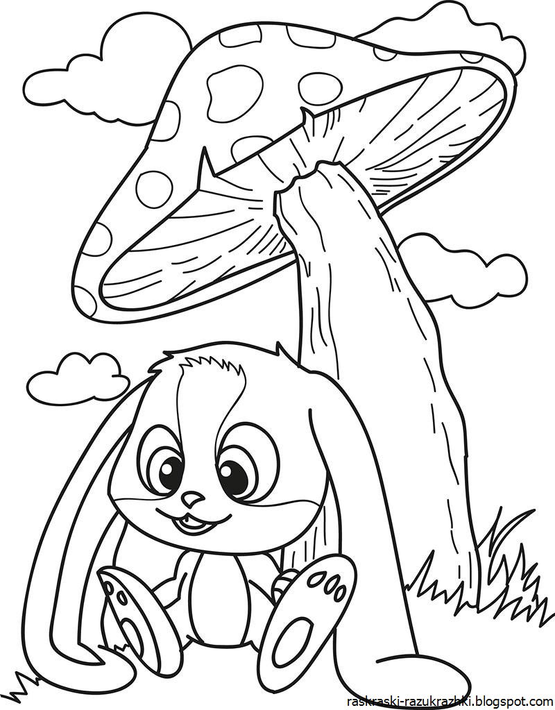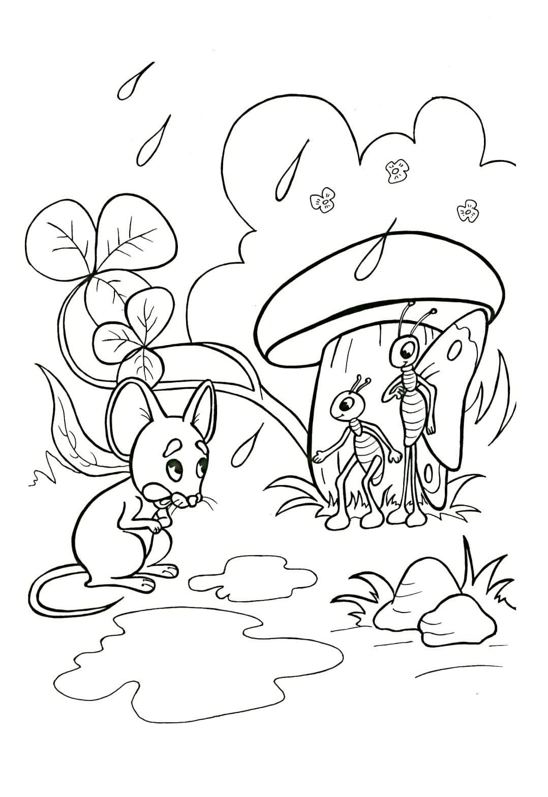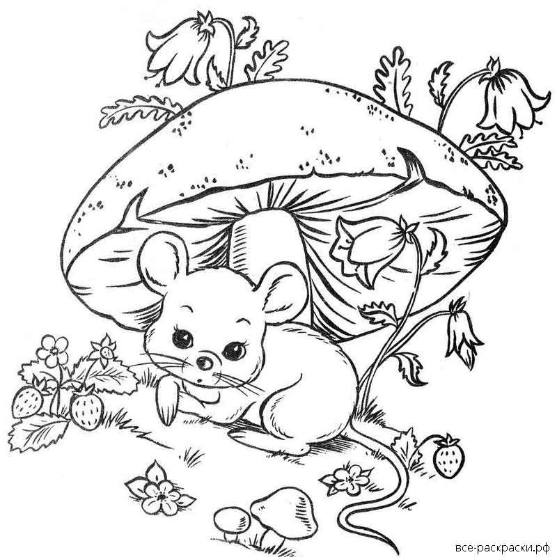 ![Раскраски по сказкам Сутеева для детей под грибом]()