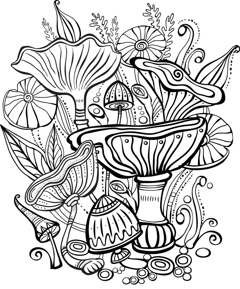 Раскраска антистресс грибы