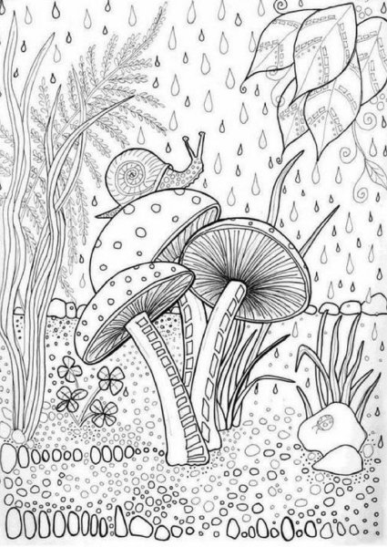 ![Раскраска антистресс грибы]()
