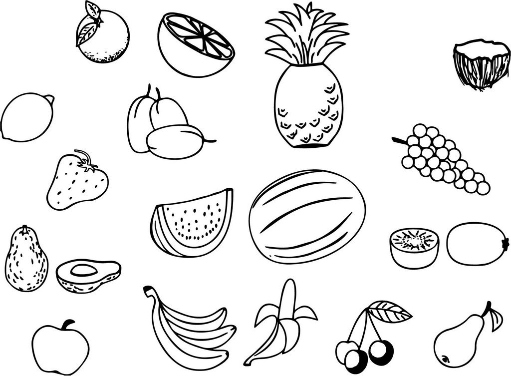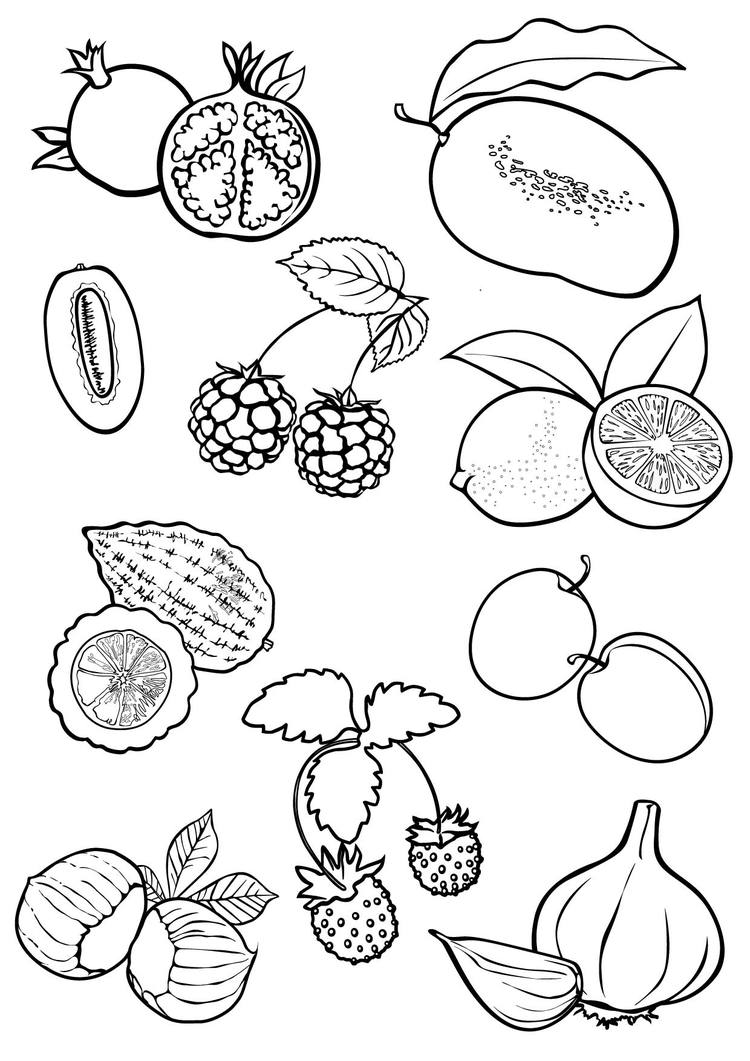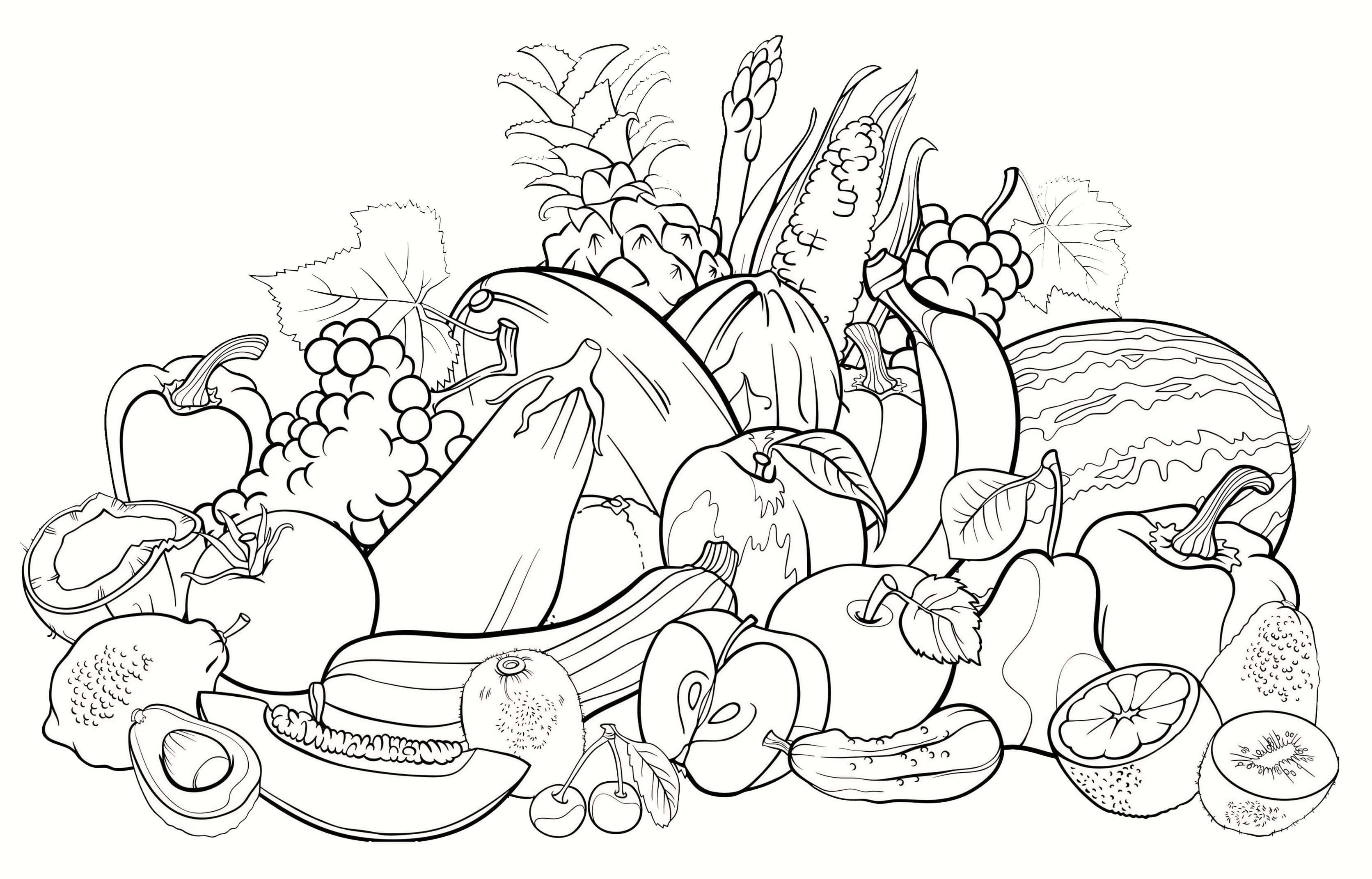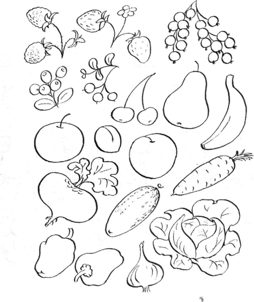 ![Раскраски овощей и фруктов для детей 5-6 лет]()